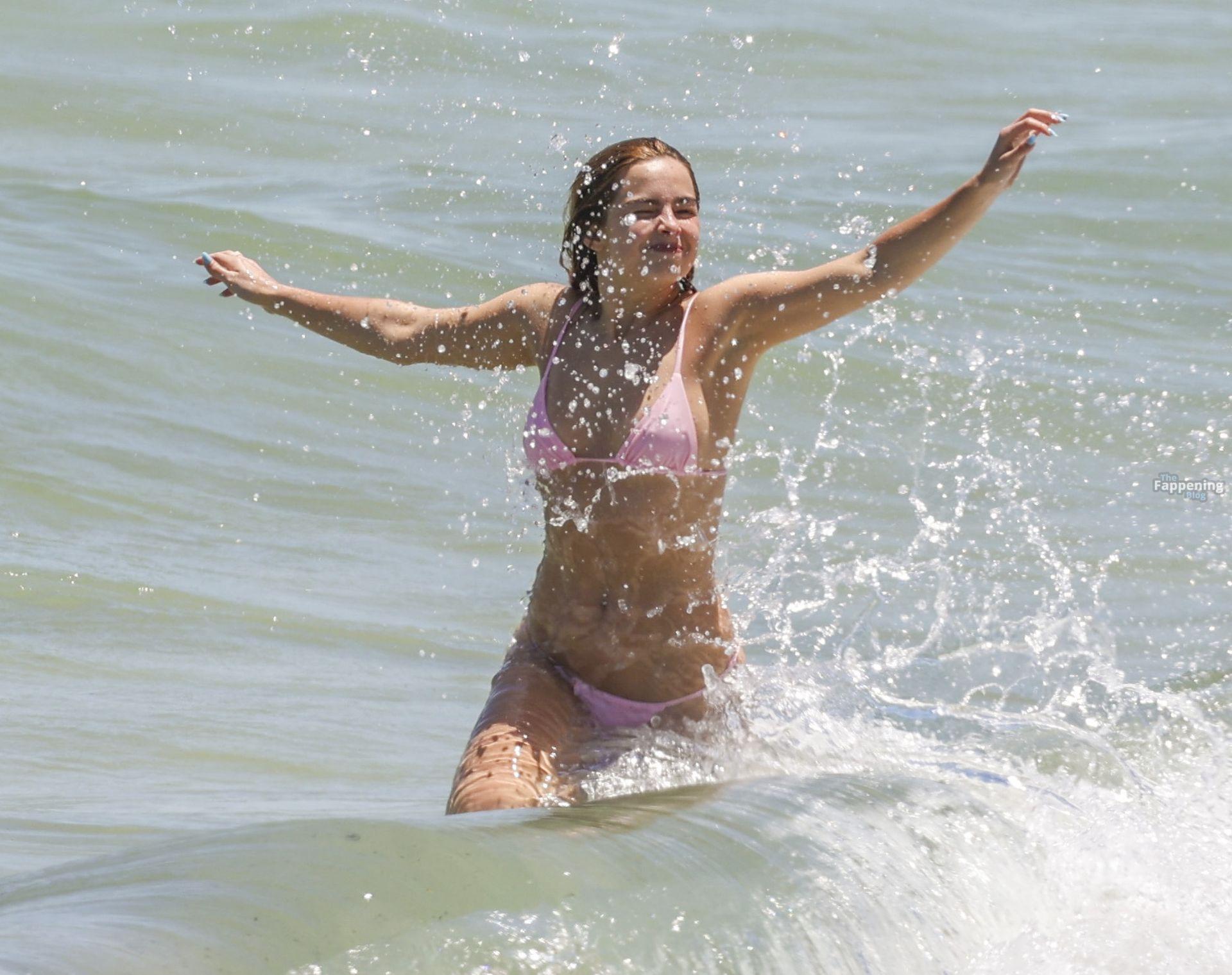 Addison Rae cools off in the Indian Ocean, flauntin’ her beach body durin’ a sun-soaked day at Cottesloe Beach in Perth. The influencer showed off her toned figure in a baby pink bikini, stretchin’ and strikin’ a series of yoga-inspired poses along the shoreline before splashin’ around in the surf durin’ the Aussie summer.