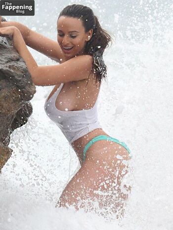 Smoking hot beach babe Alexis Ren cools down in the ocean after snapping some hot photos by a mystery man for her social media.