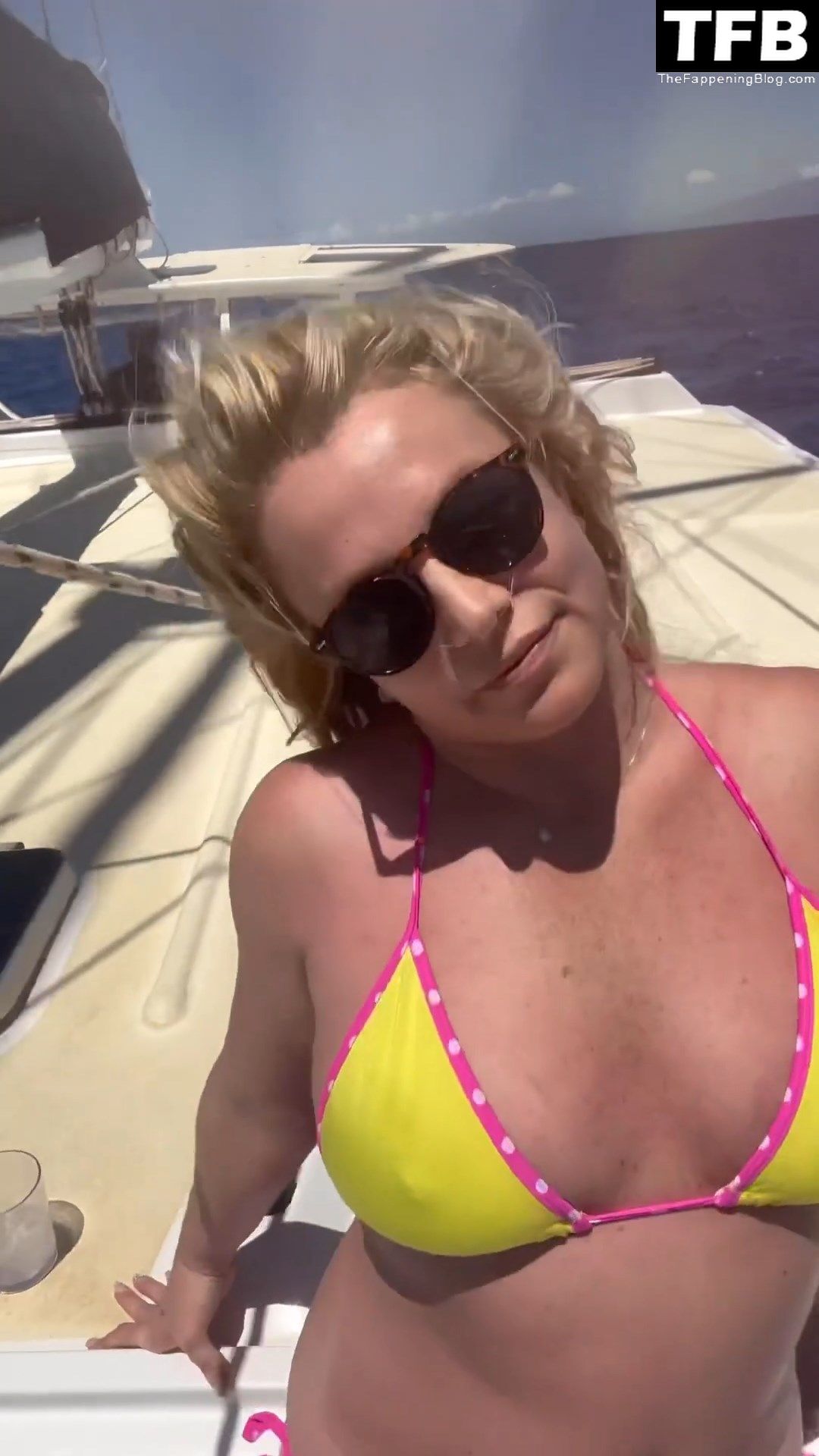 Britney Spears enjoys her vacation on a yacht with friends posing topless and showing off some skin in the screenshots and video below – Instagram, 09/07/2022.