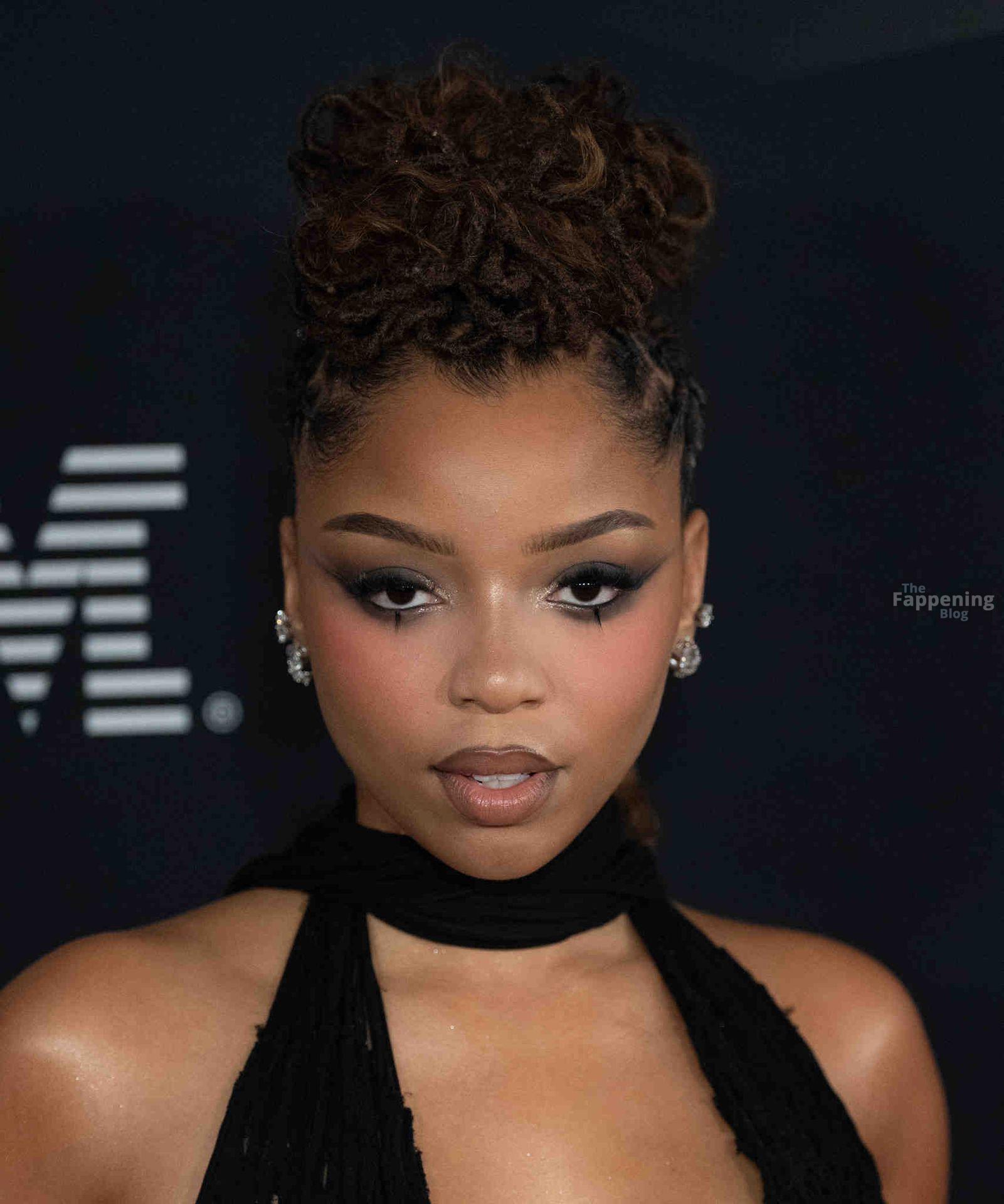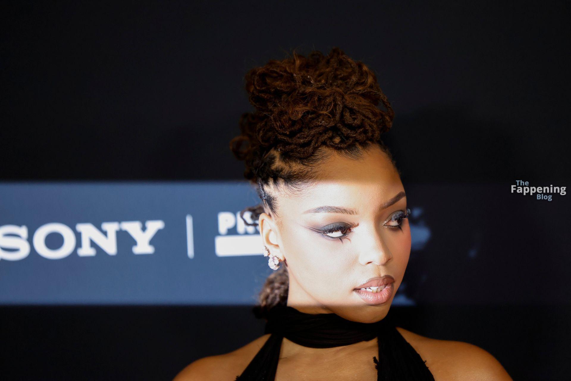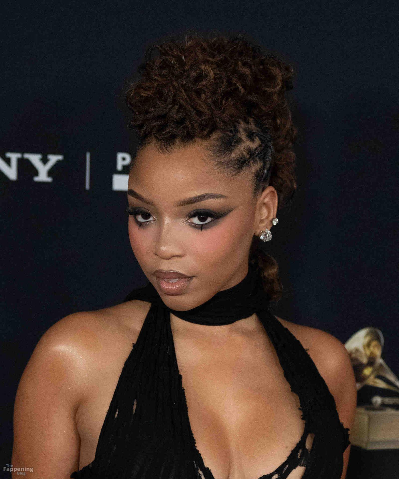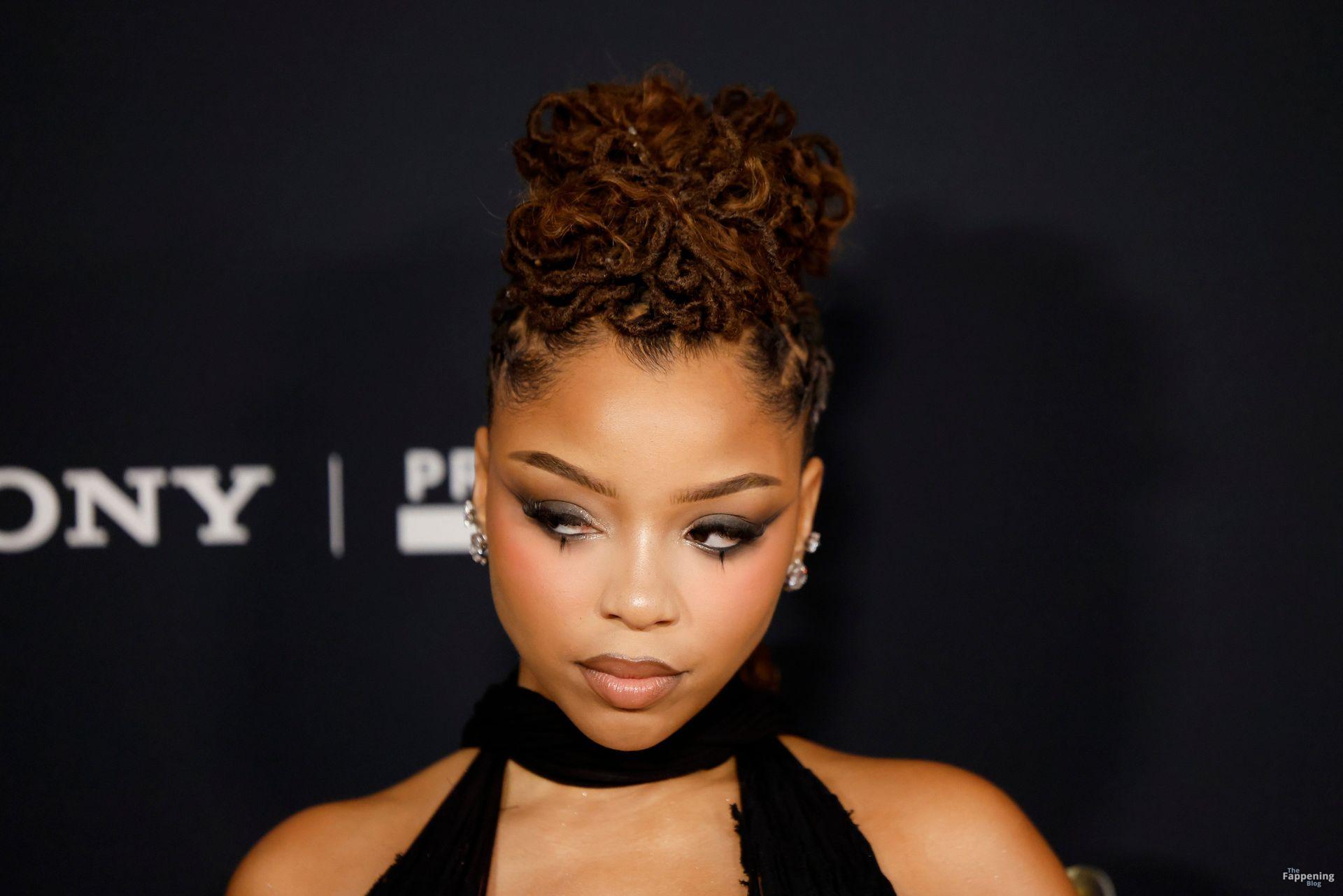 Chloe Bailey arrives on the red carpet of the Pre-Grammy Gala at the The Beverly Hilton hotel in Beverly Hills, California.