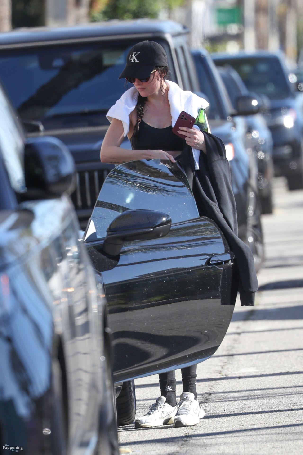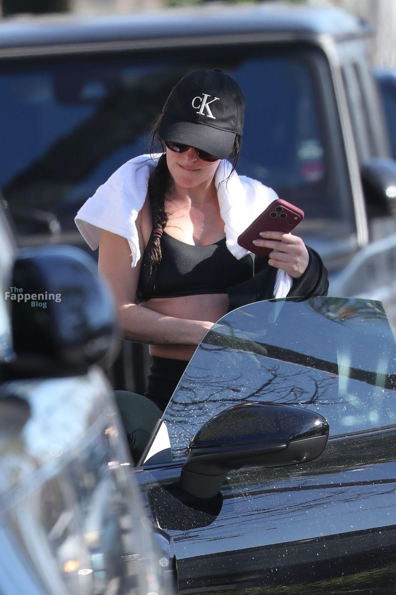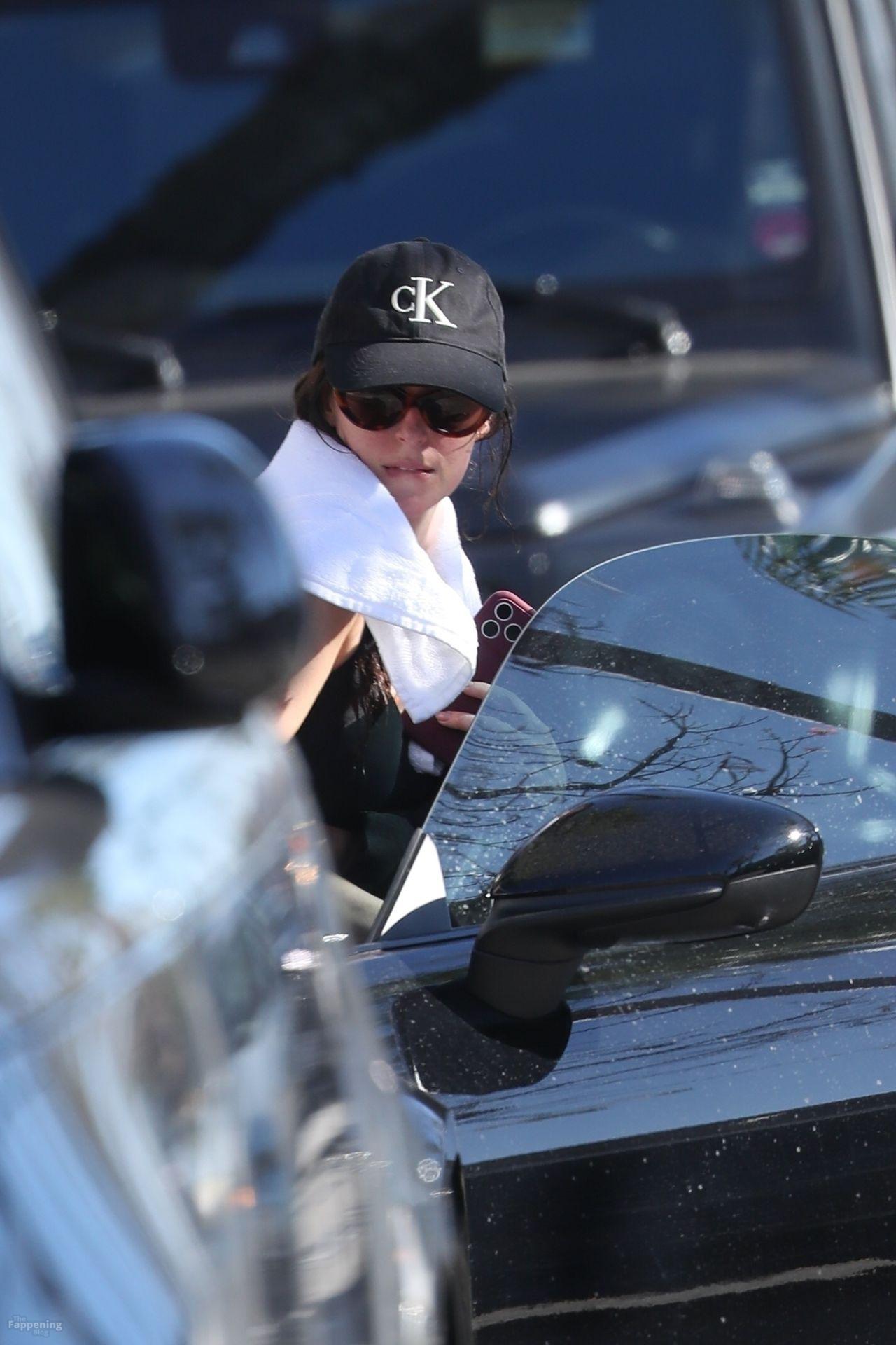 The Fappening Star Dakota Johnson keeps it hot leaving the gym in LA, sweat glowing on that tight body after crushing a workout. The 36-year-old Materialists star rocks leggings that hug her ass and legs perfectly, crop top flashing toned abs and a hint of tits.