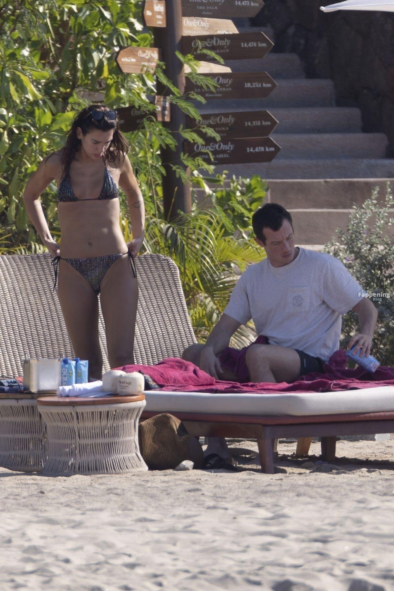 Pop star Dua Lipa and her partner, actor Callum Turner, were seen showin’ affection and enjoyin’ a relaxing day on the beach following the conclusion of her “Radical Optimism Tour” in Mexico. Dua was spotted wearing a tiny silver bikini while seemingly consolin’ her fiancé, Callum, as they sunbathed on the lounge chairs.
