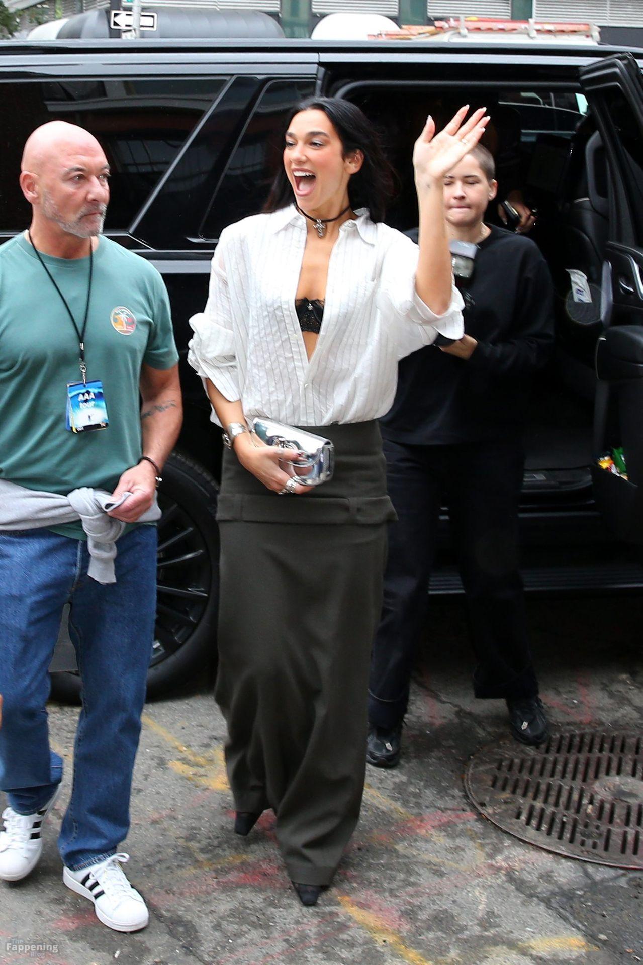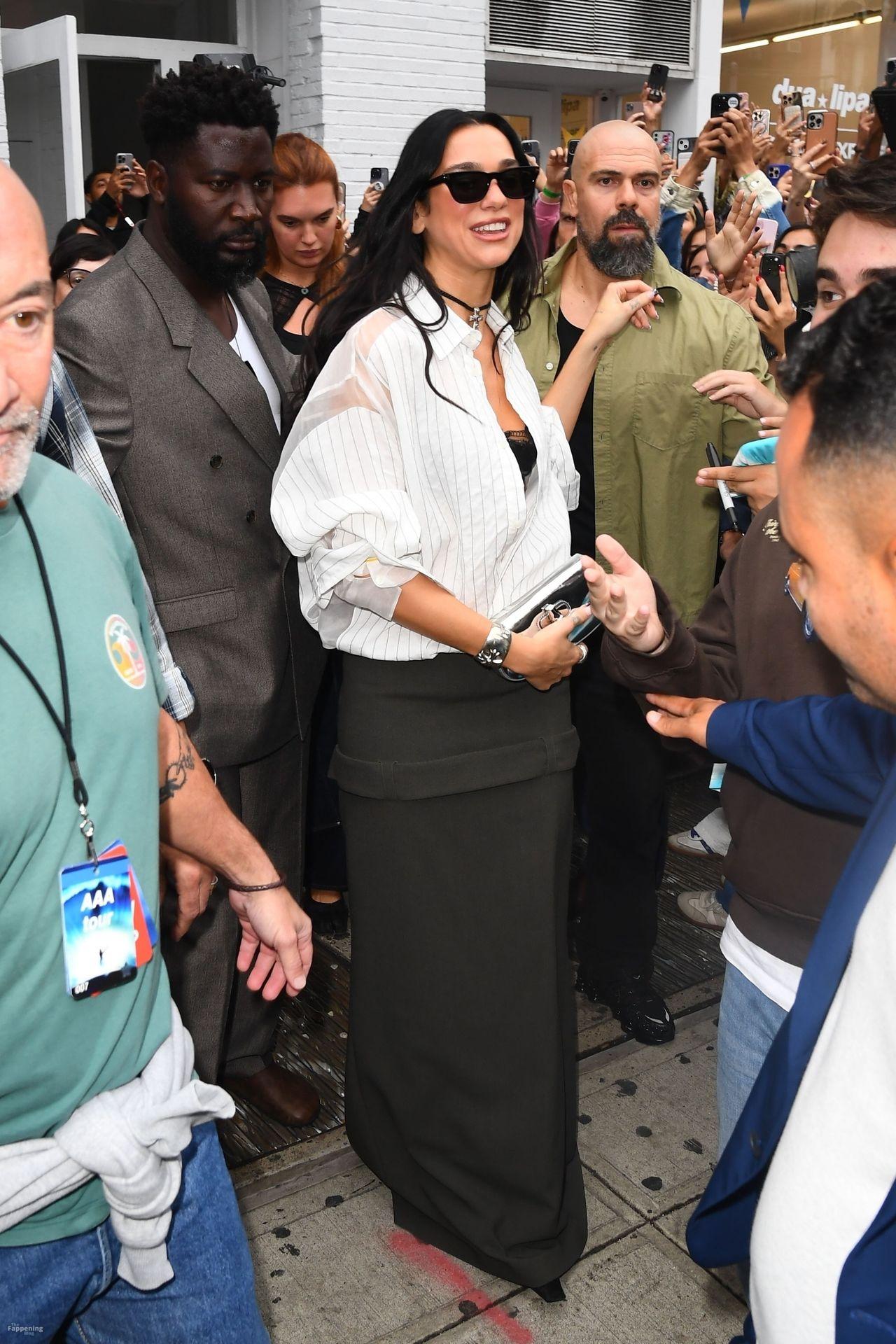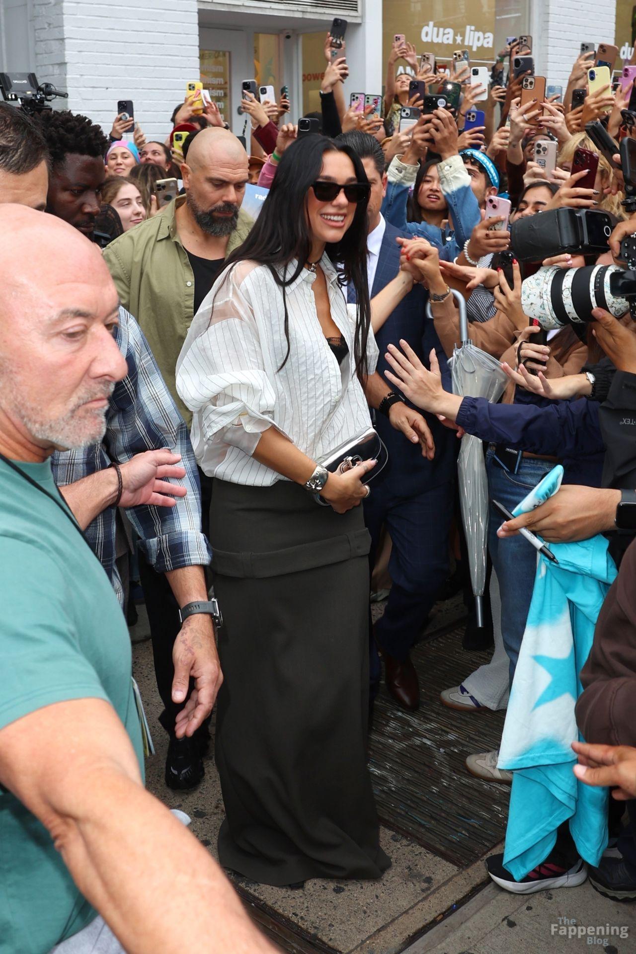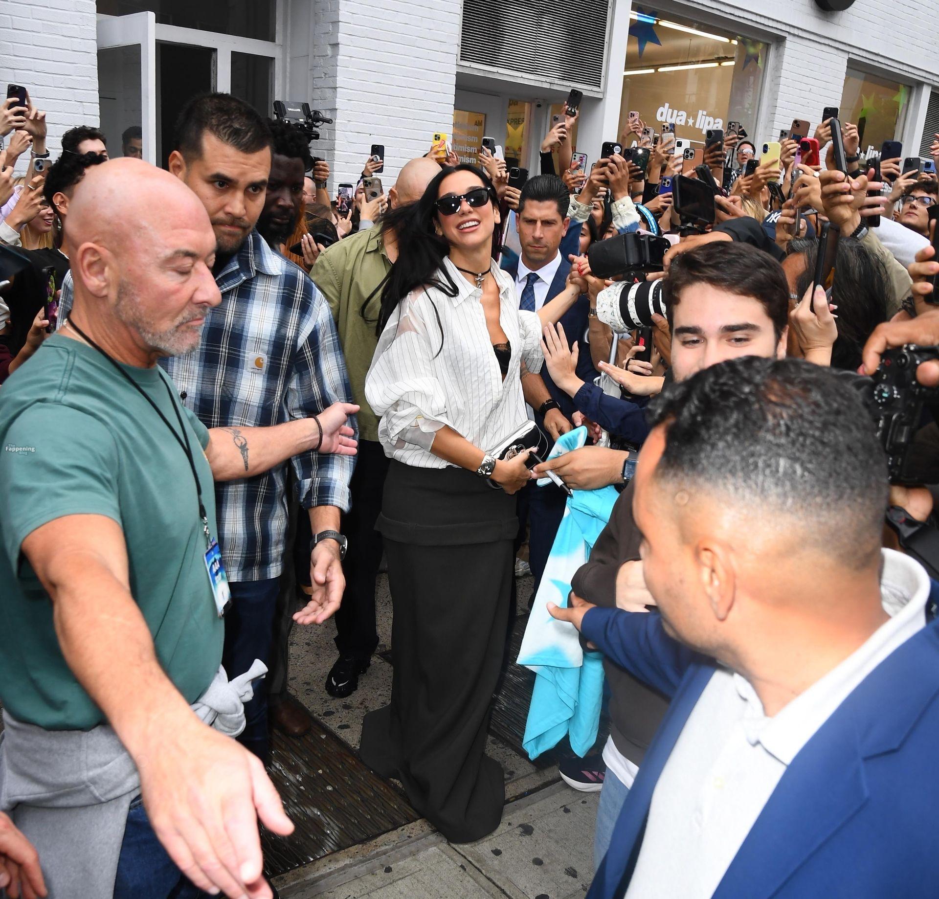 Bra out, cleavage on display—Dua Lipa’s daring NYC pop-up look left fans speechless and cameras flashing New York, NY Singer Dua Lipa is all smiles as she arrives at her “Radical Optimism” Pop-Up Shop in Manhattan.