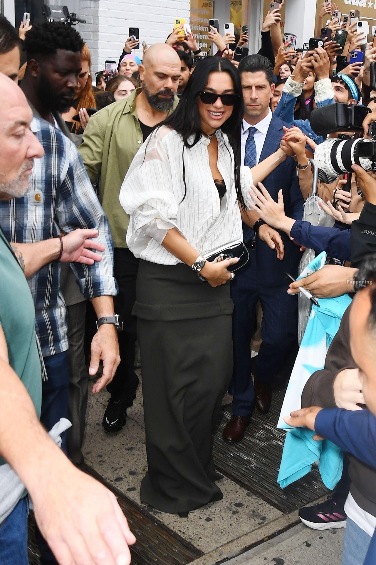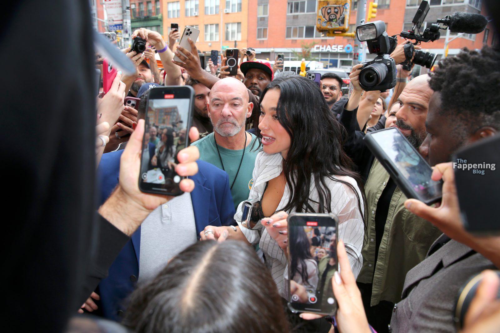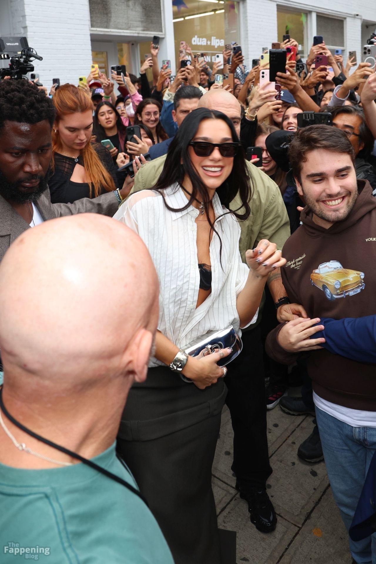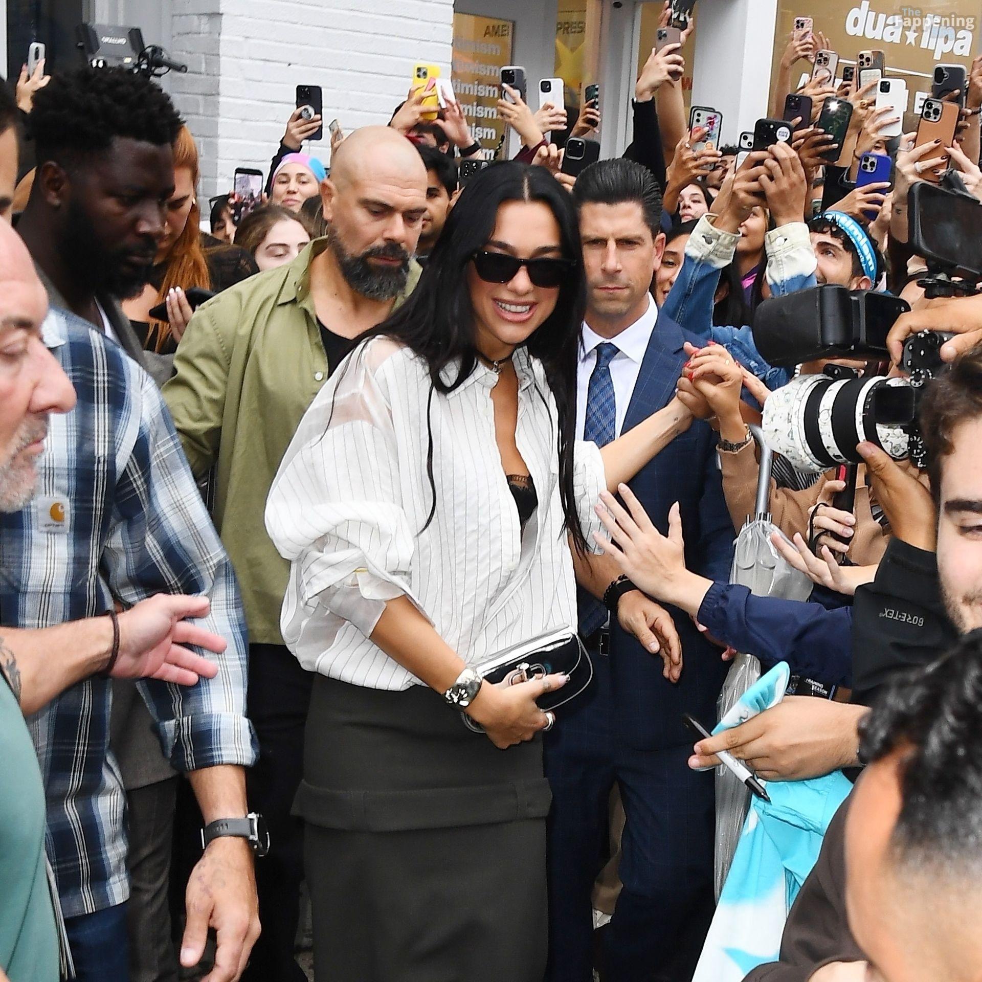 Bra out, cleavage on display—Dua Lipa’s daring NYC pop-up look left fans speechless and cameras flashing New York, NY Singer Dua Lipa is all smiles as she arrives at her “Radical Optimism” Pop-Up Shop in Manhattan.