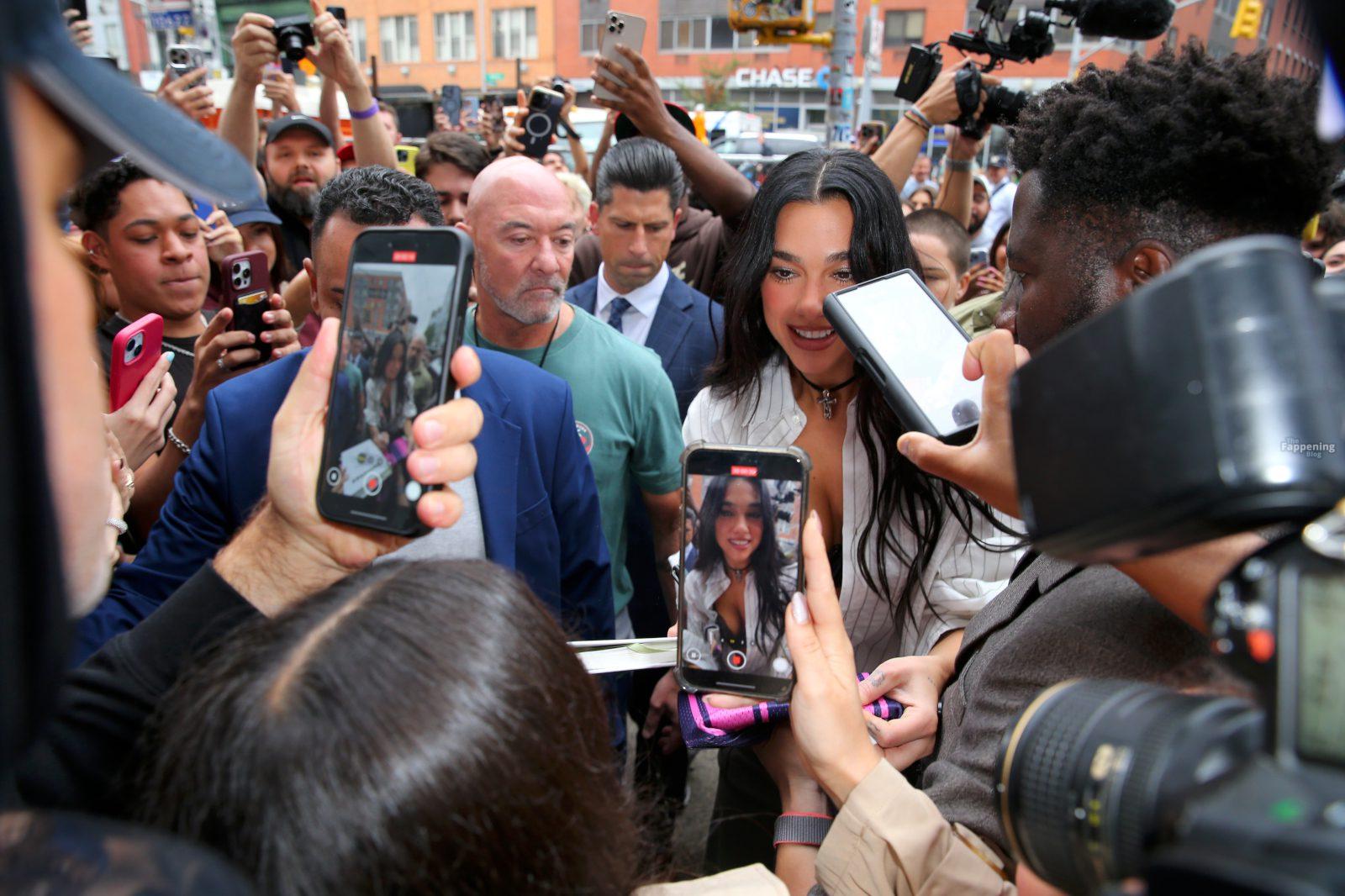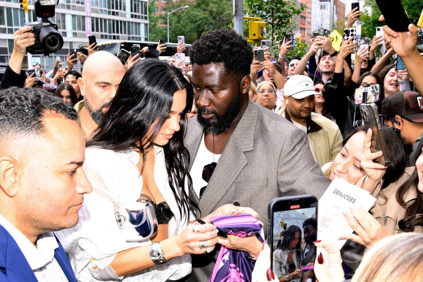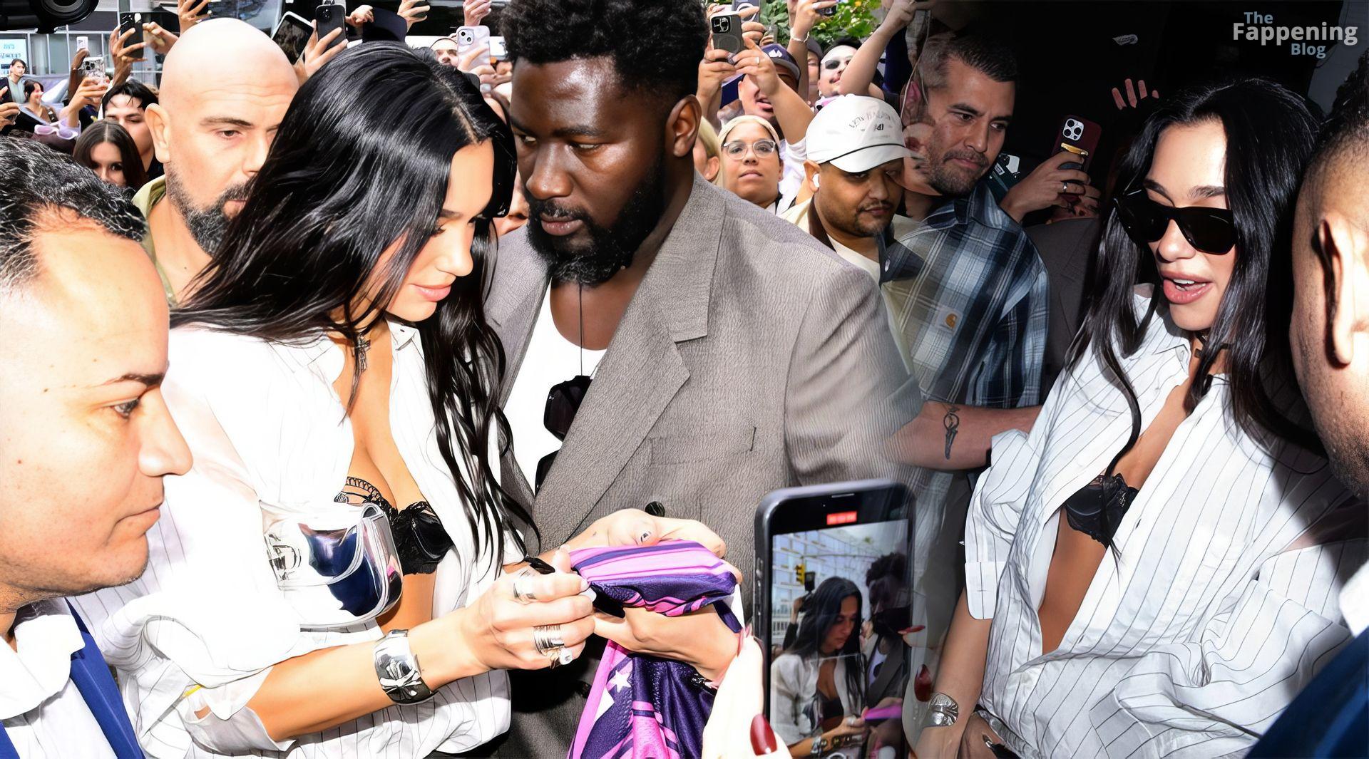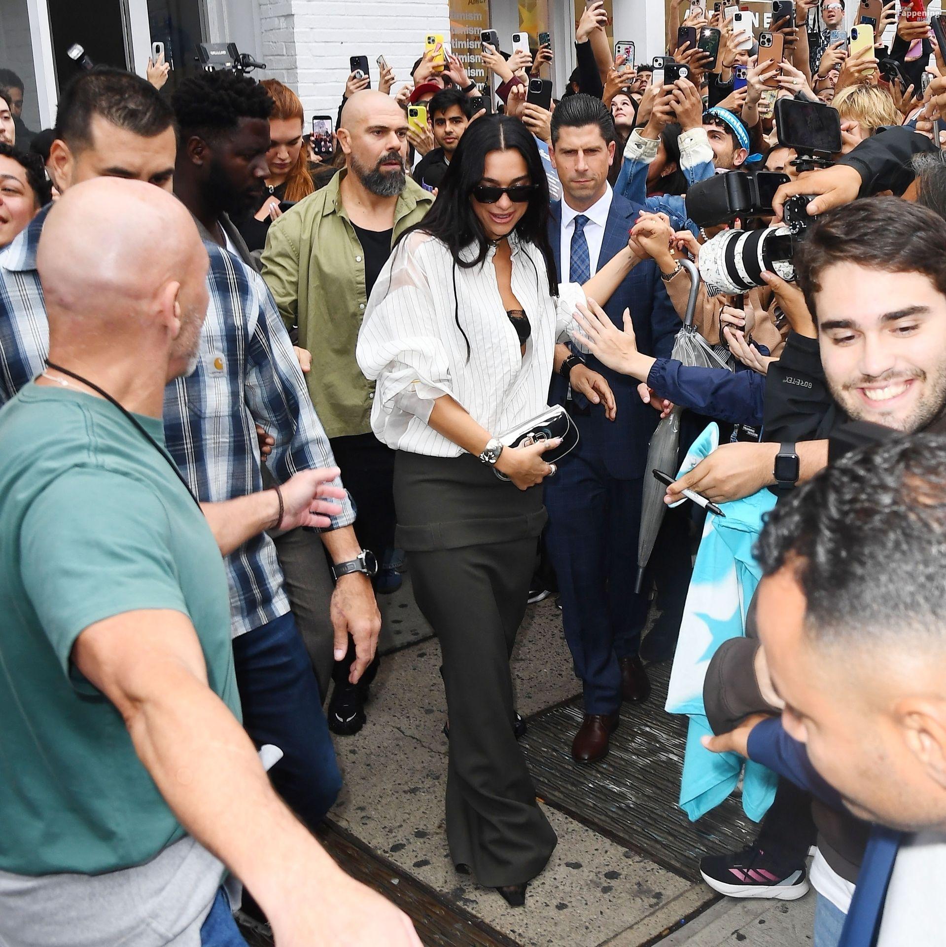 Bra out, cleavage on display—Dua Lipa’s daring NYC pop-up look left fans speechless and cameras flashing New York, NY Singer Dua Lipa is all smiles as she arrives at her “Radical Optimism” Pop-Up Shop in Manhattan.