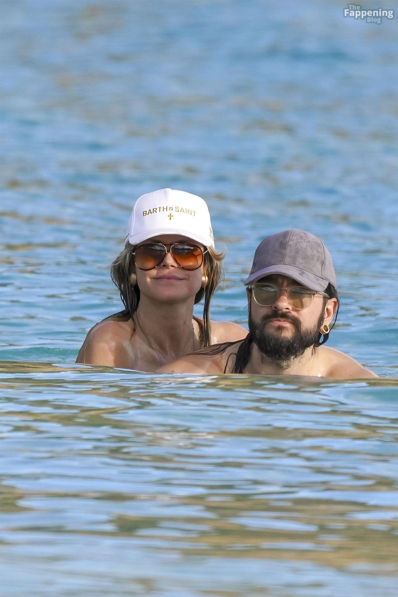 Heidi Klum and hubby Tom Kaulitz are pictured on a St. Barths beach getaway, turning winter into summer heat.