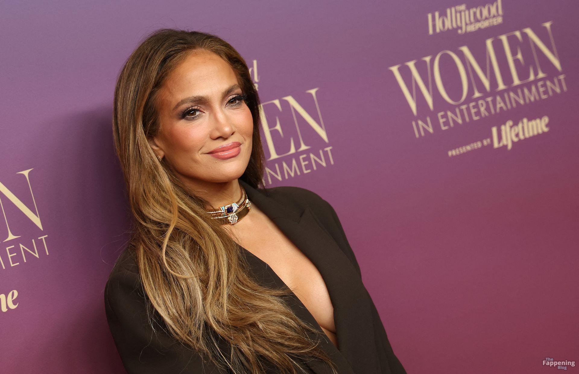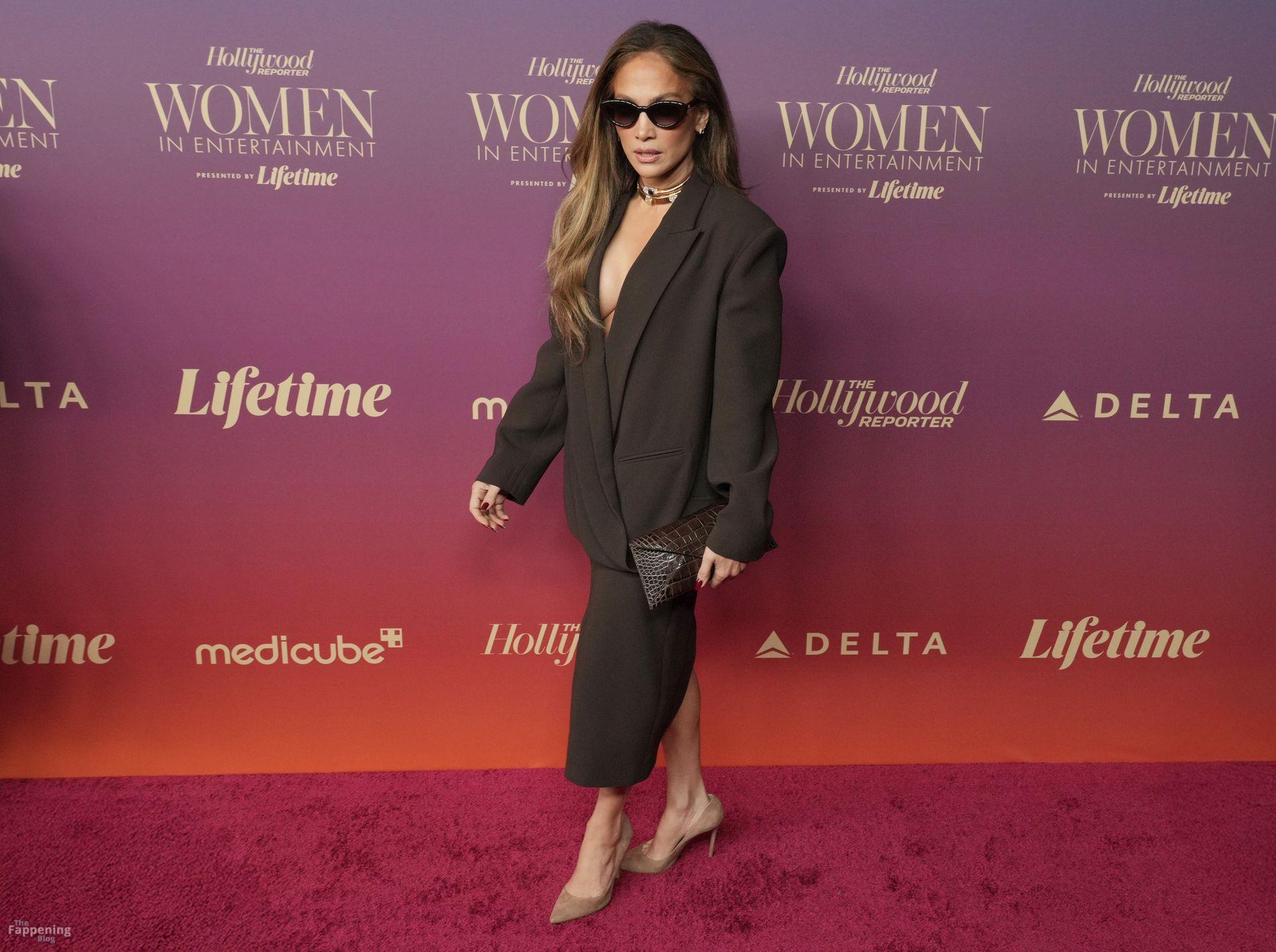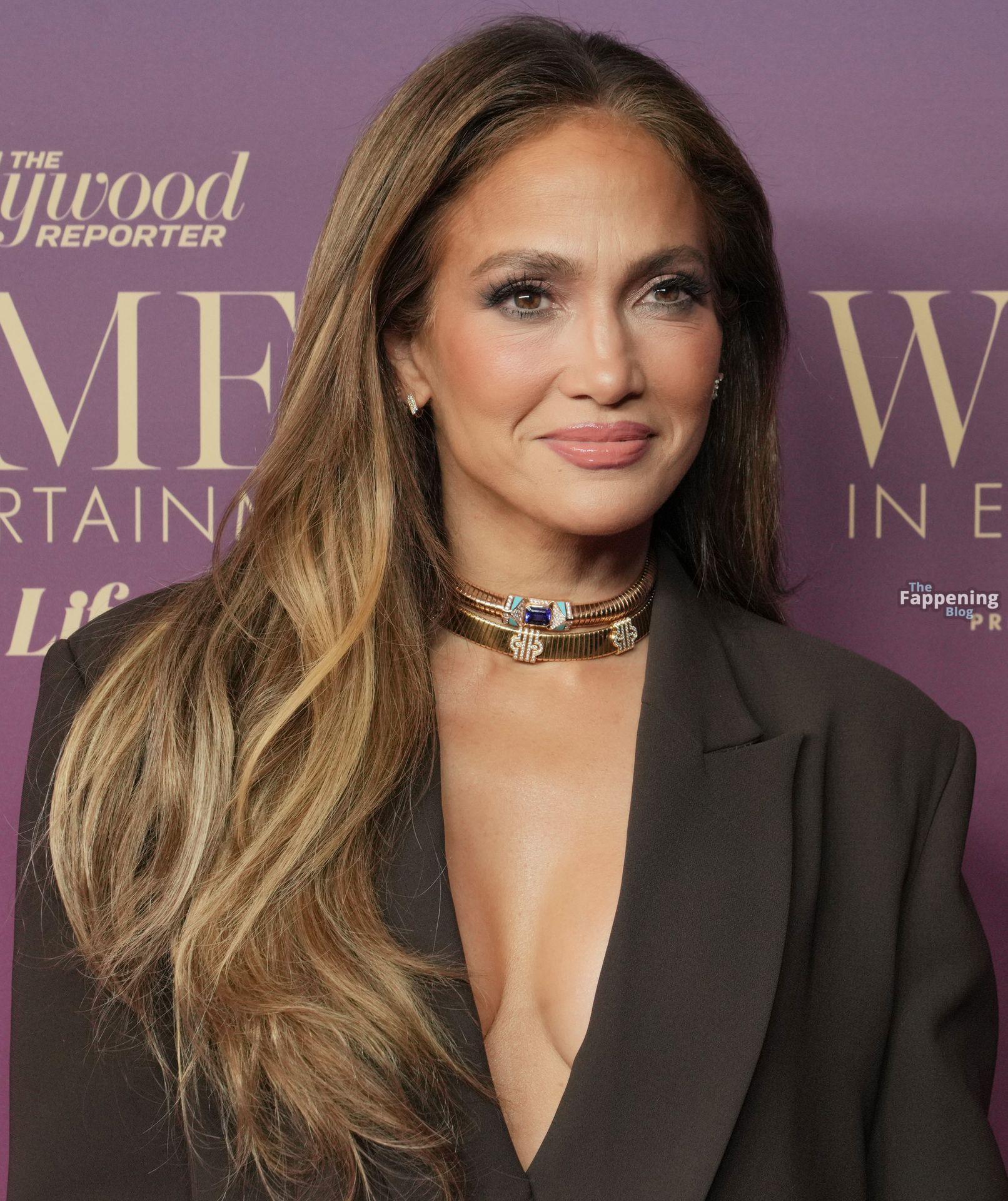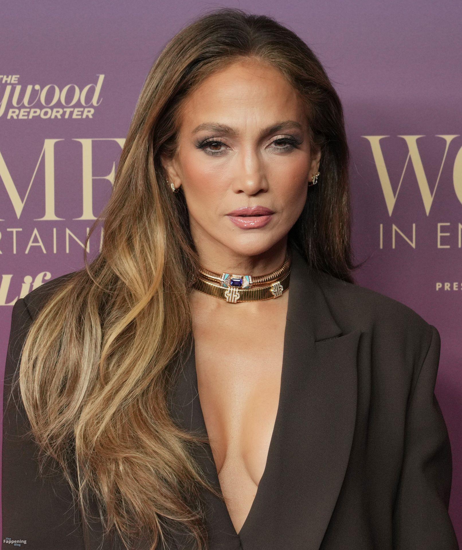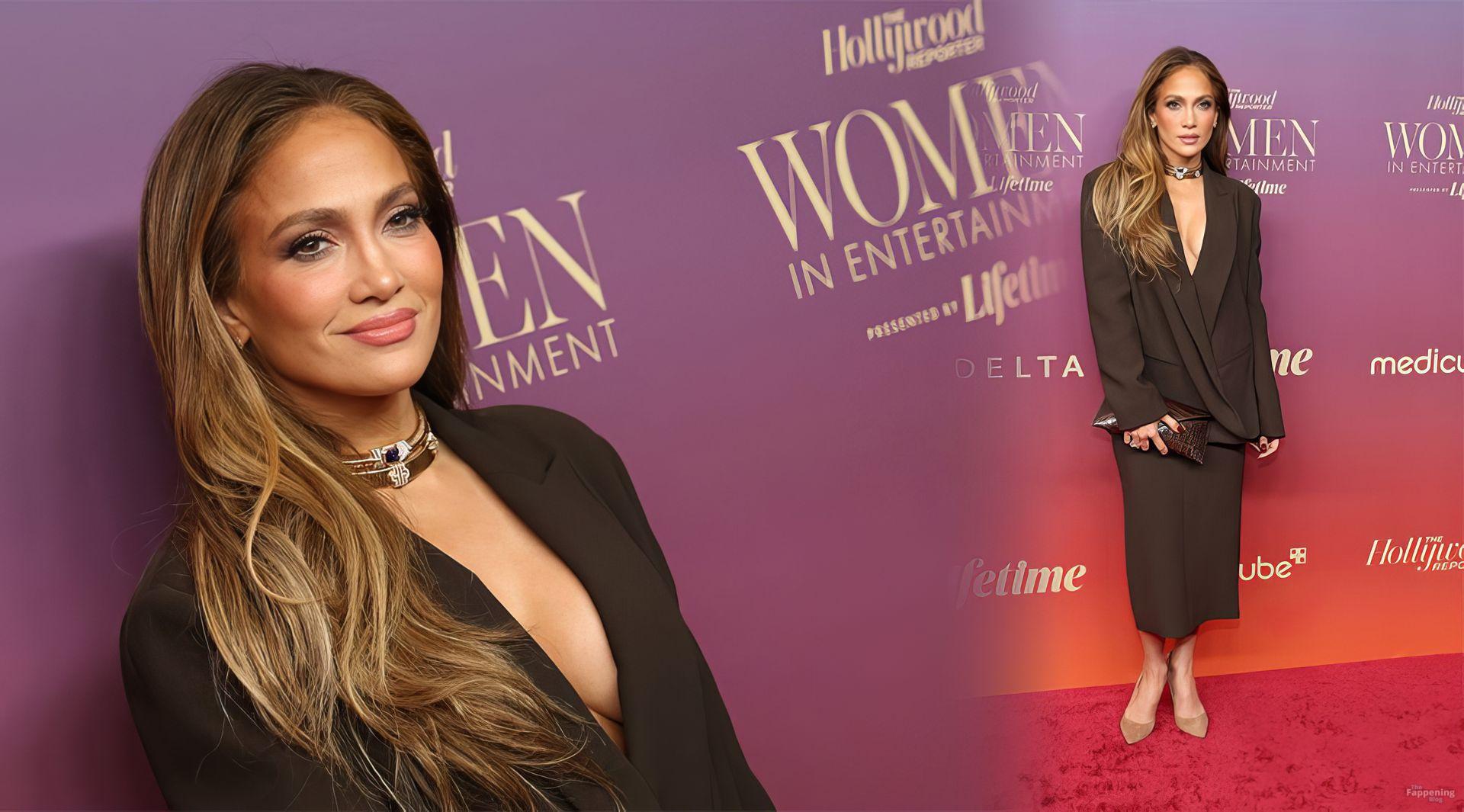US singer-actress Jennifer Lopez was in a brown suit, flauntin’ her cleavage while attendin’ The Hollywood Reporter’s Annual Women in Entertainment Gala at the Beverly Hills Hotel in Beverly Hills, California.