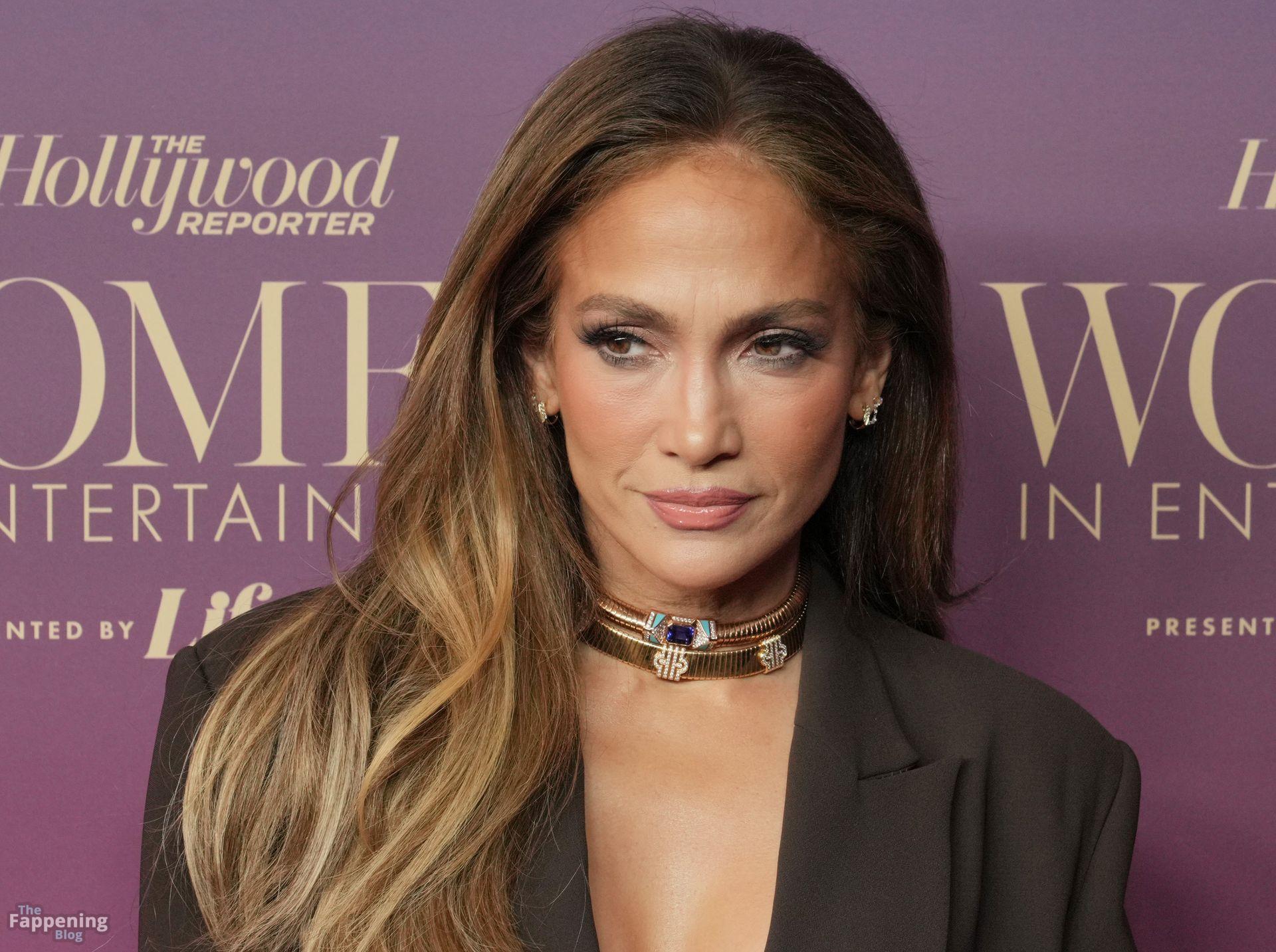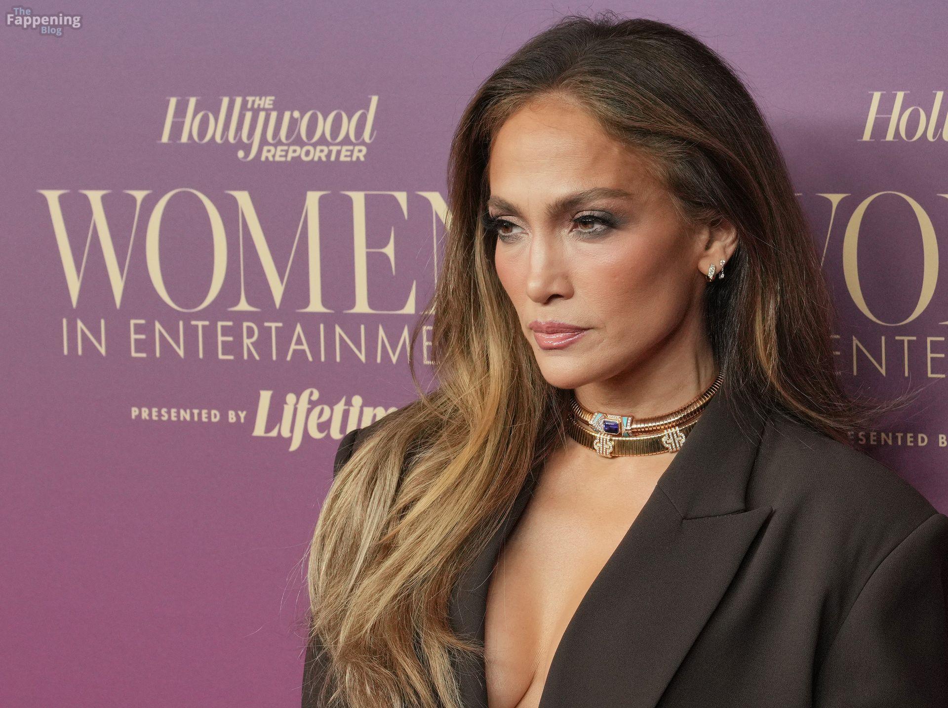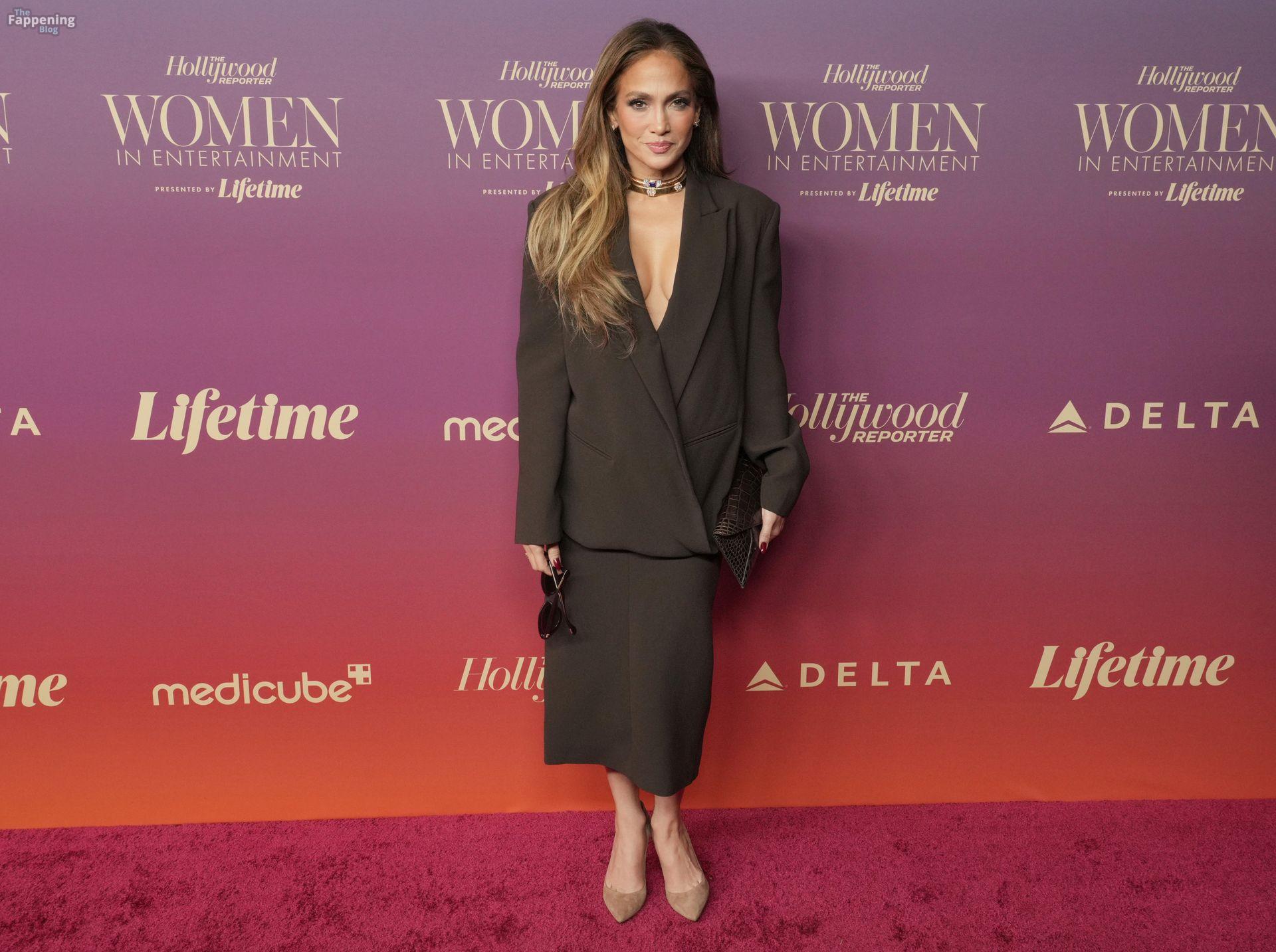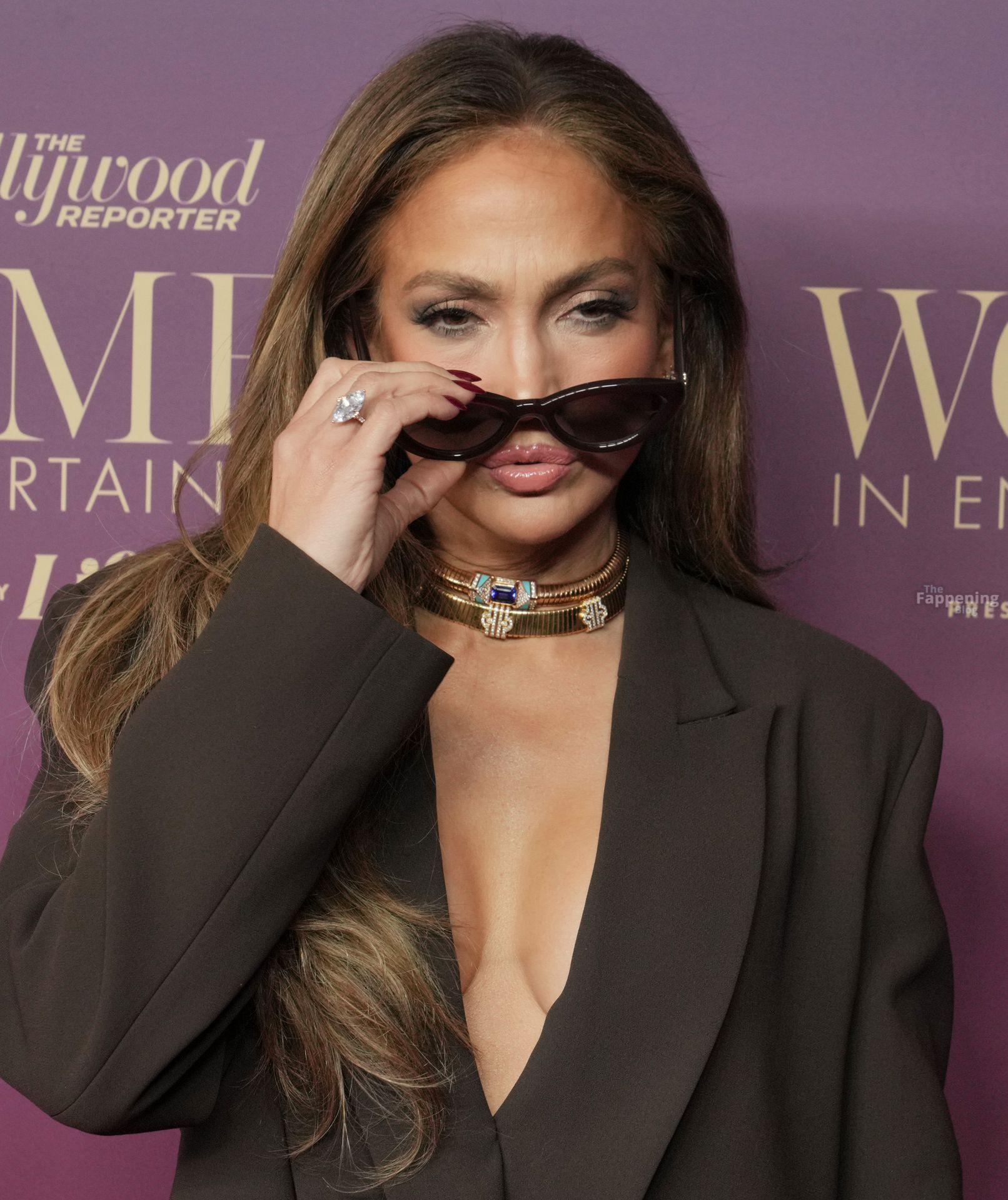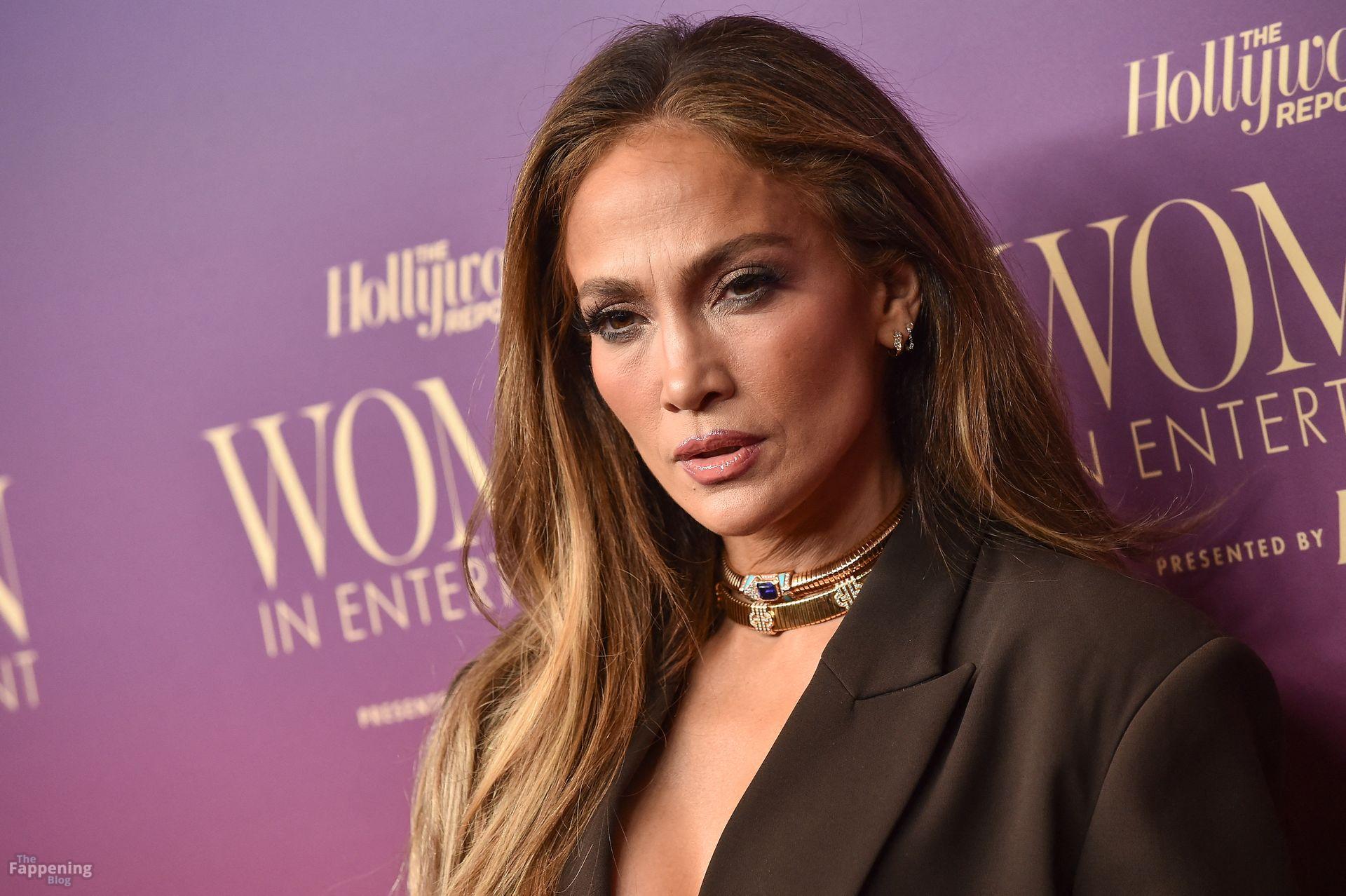 US singer-actress Jennifer Lopez was in a brown suit, flauntin’ her cleavage while attendin’ The Hollywood Reporter’s Annual Women in Entertainment Gala at the Beverly Hills Hotel in Beverly Hills, California.