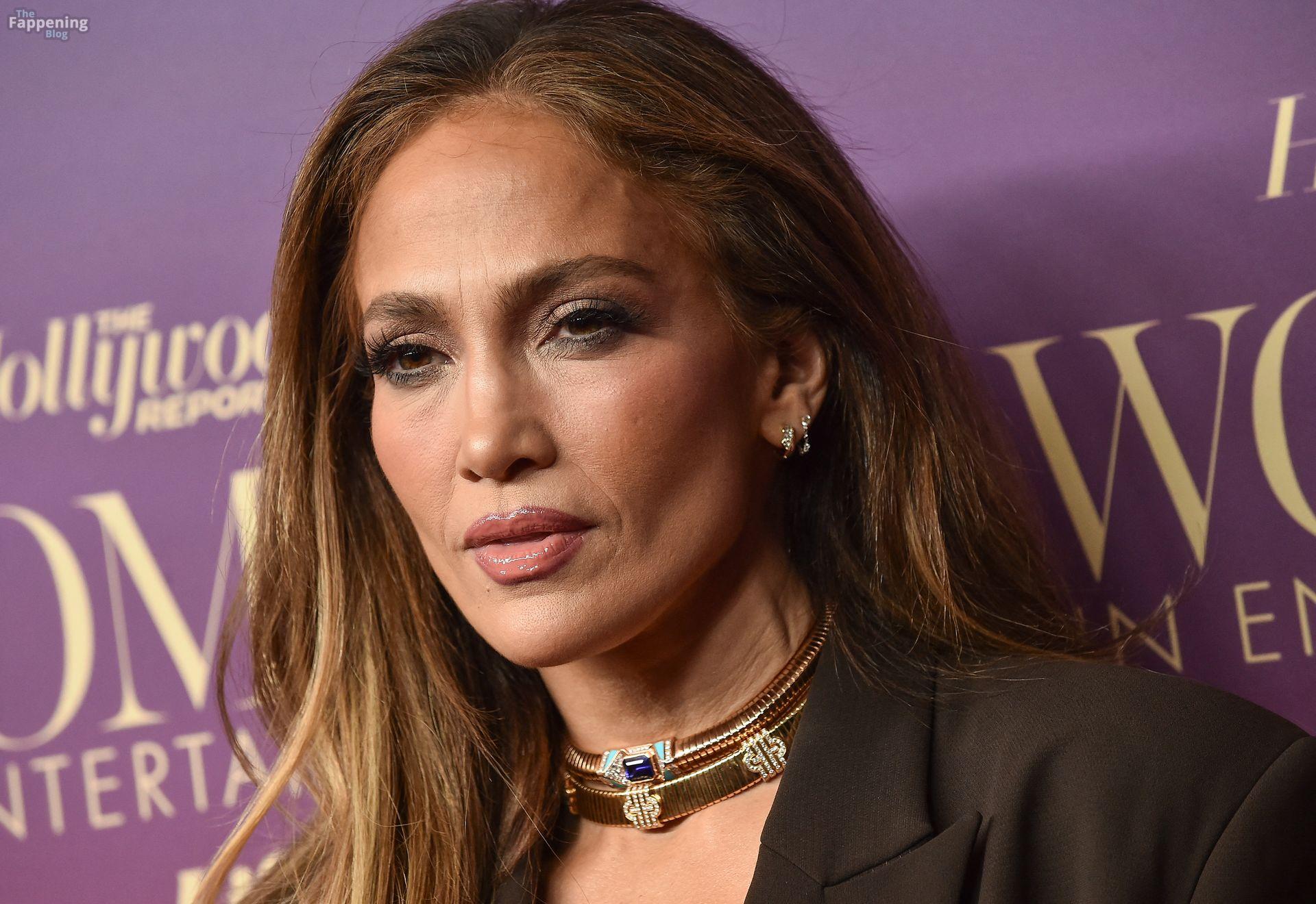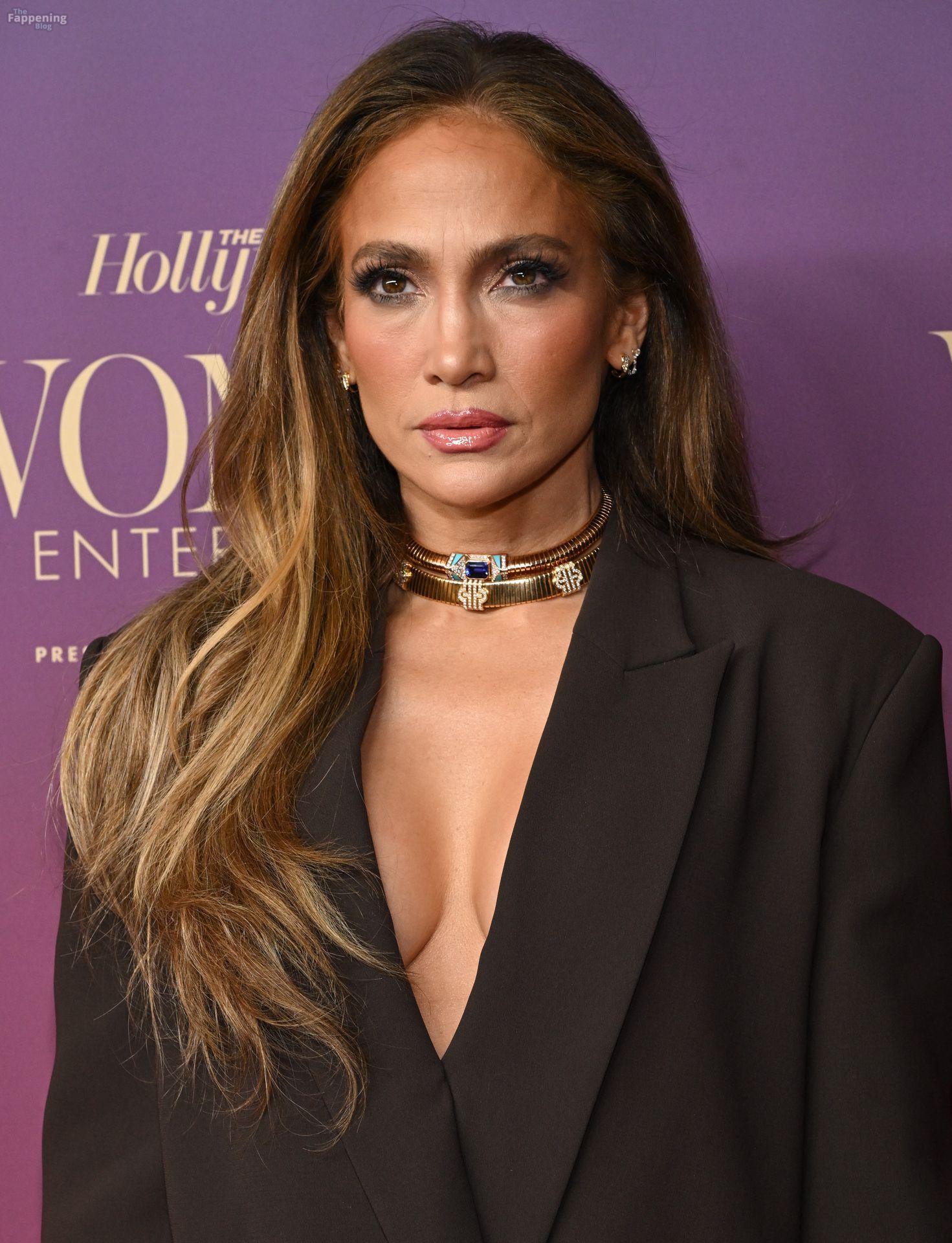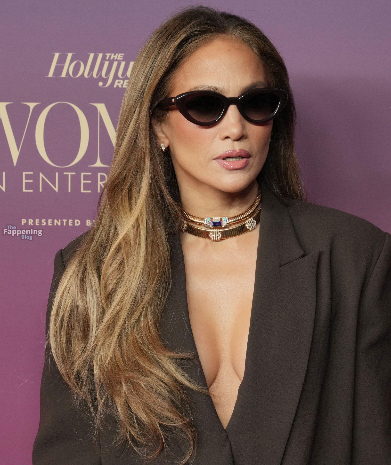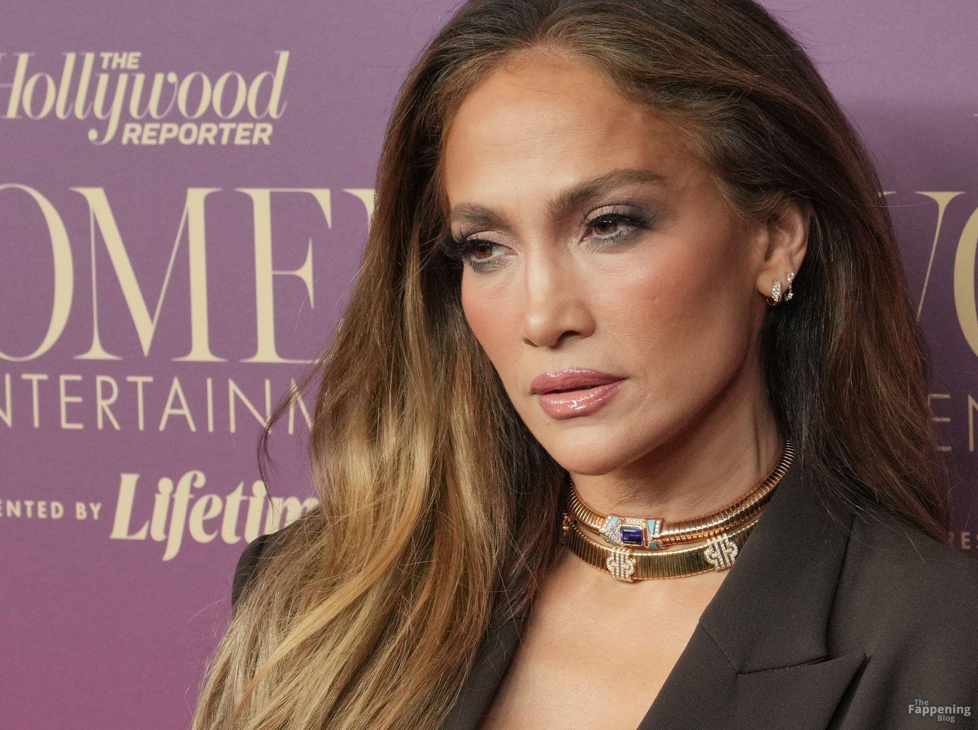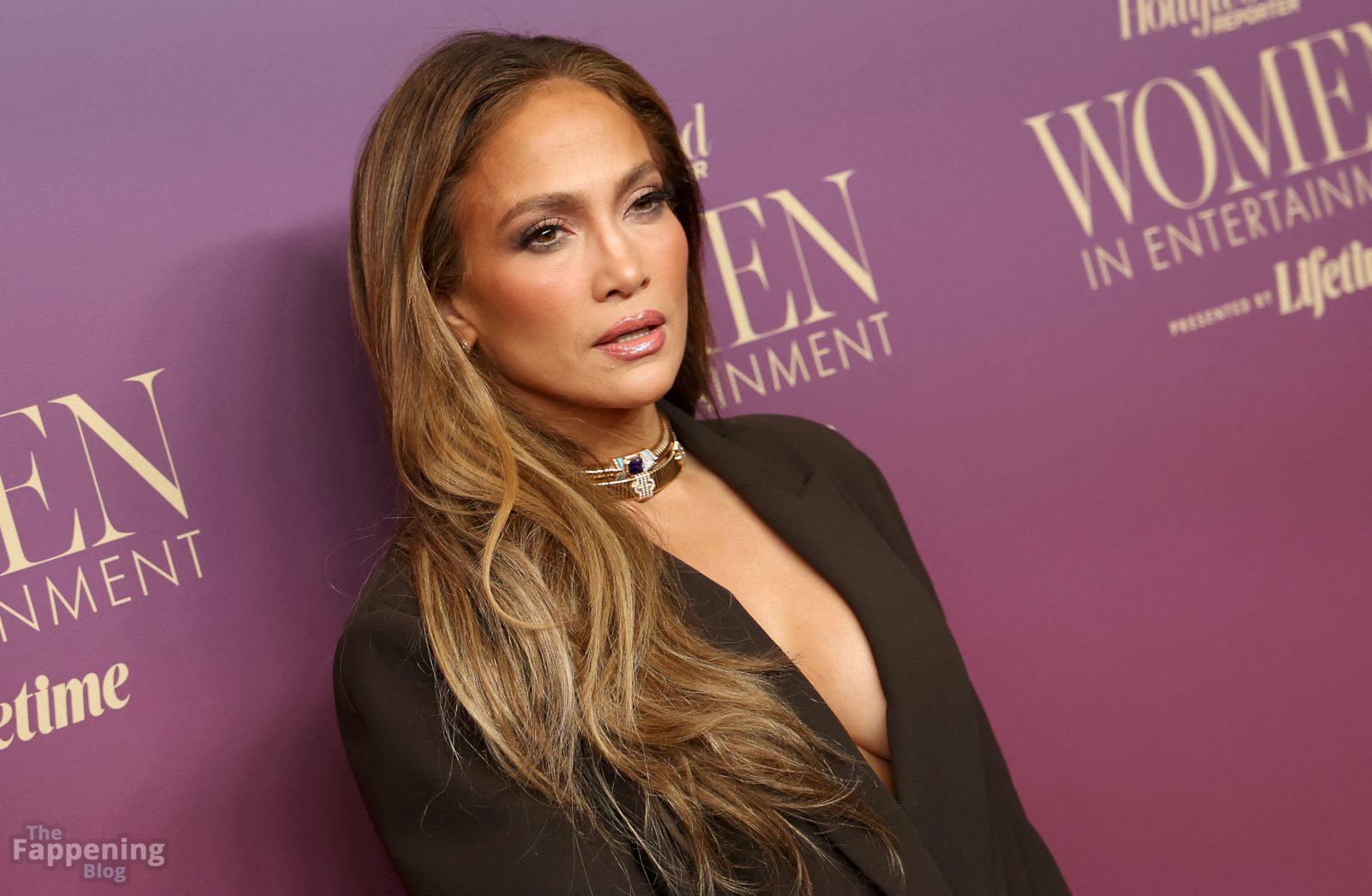 US singer-actress Jennifer Lopez was in a brown suit, flauntin’ her cleavage while attendin’ The Hollywood Reporter’s Annual Women in Entertainment Gala at the Beverly Hills Hotel in Beverly Hills, California.