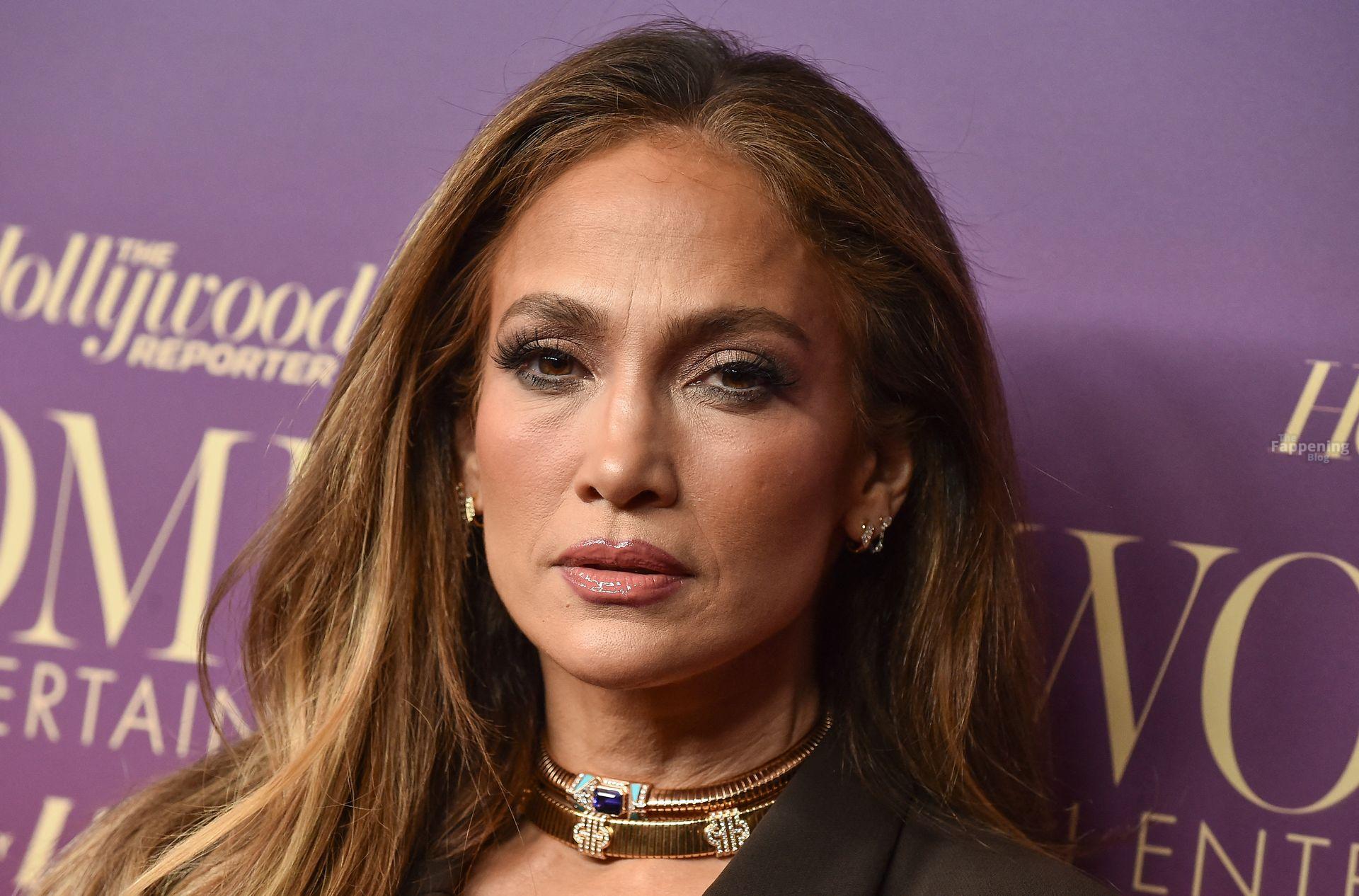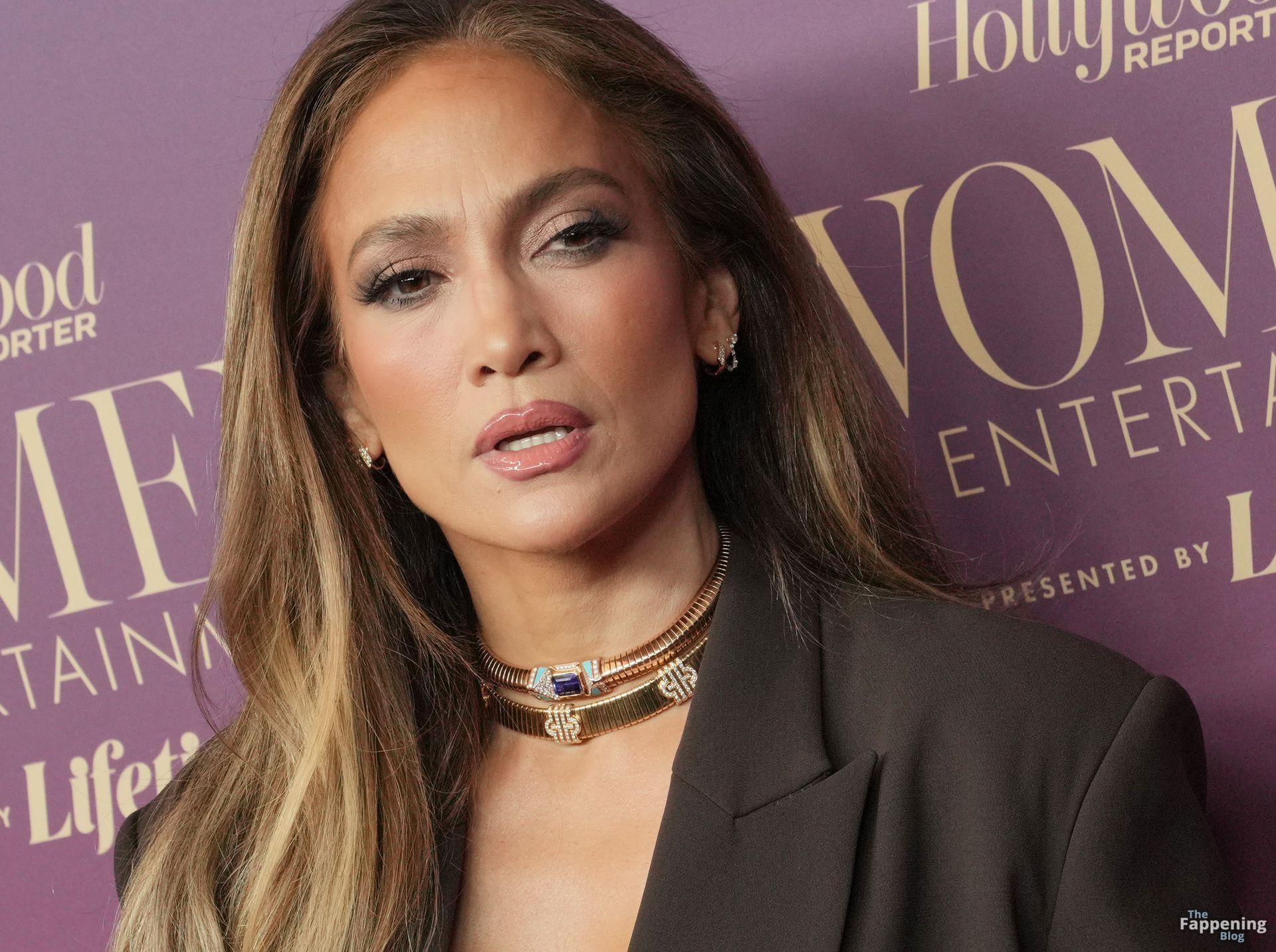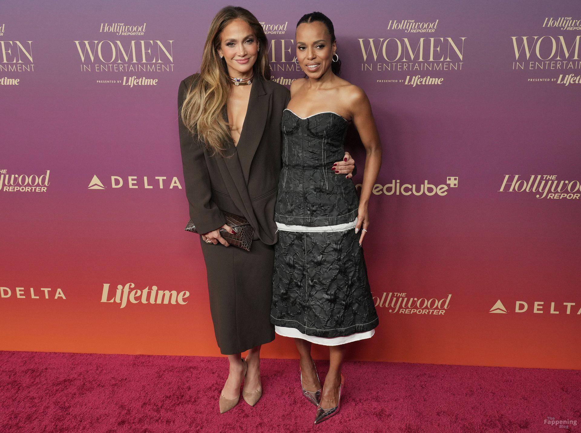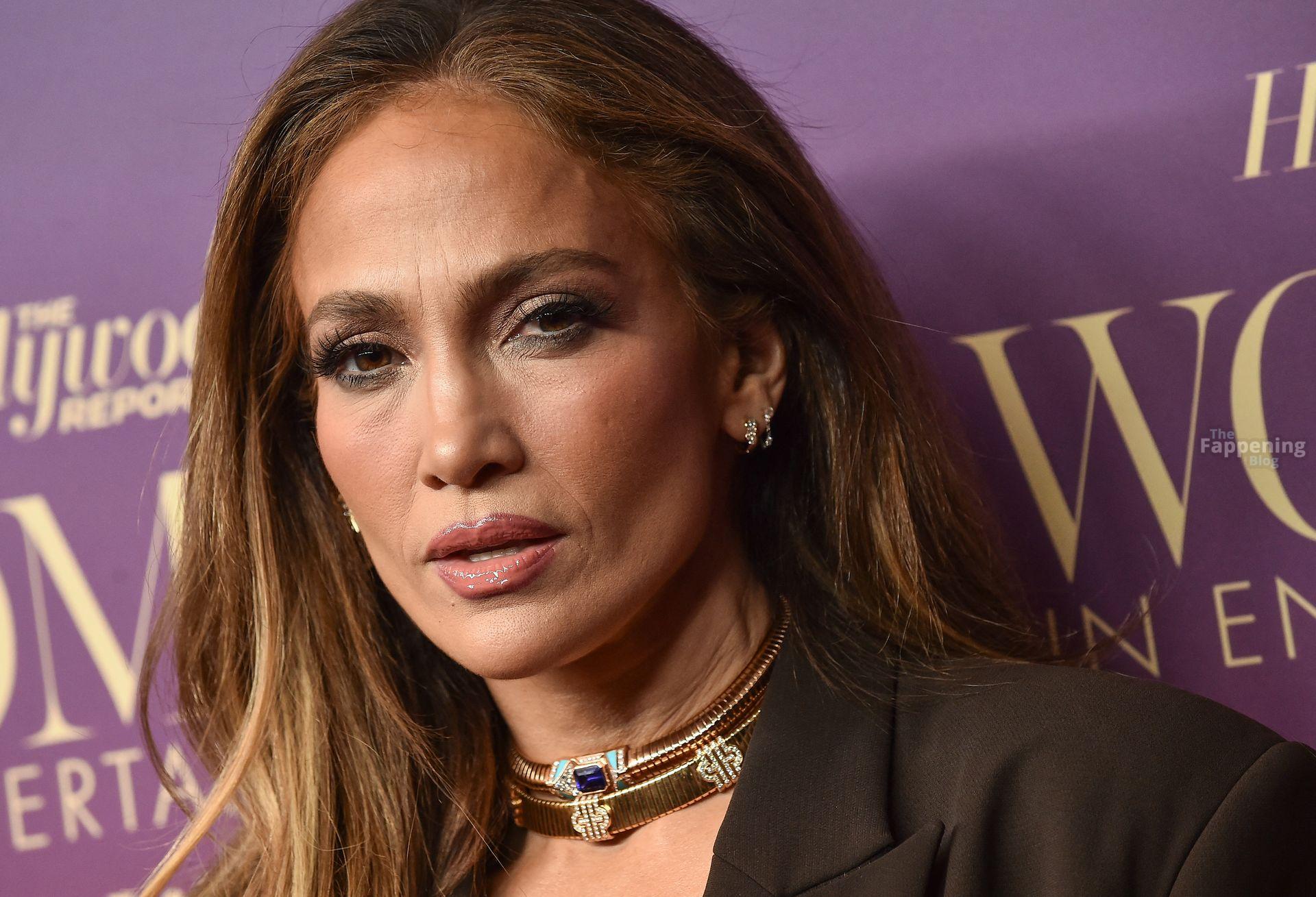 US singer-actress Jennifer Lopez was in a brown suit, flauntin’ her cleavage while attendin’ The Hollywood Reporter’s Annual Women in Entertainment Gala at the Beverly Hills Hotel in Beverly Hills, California.