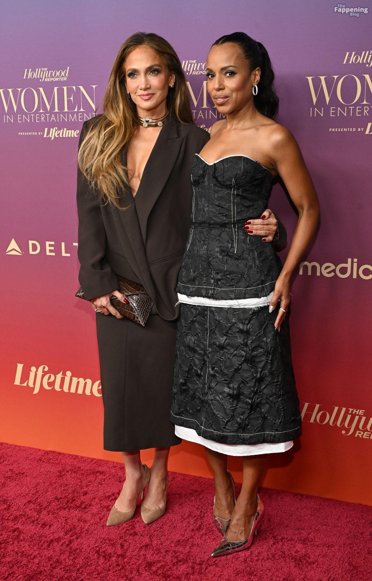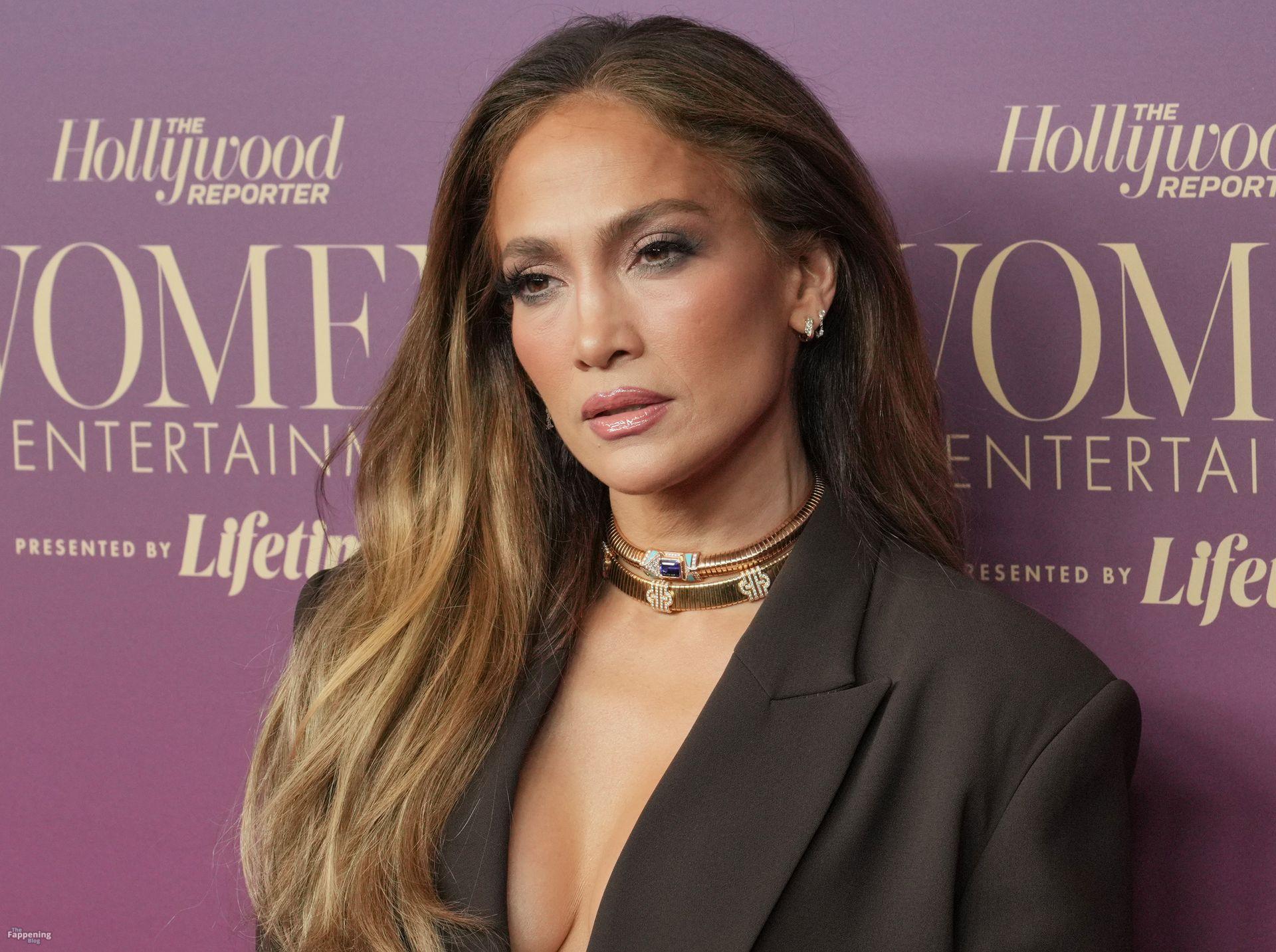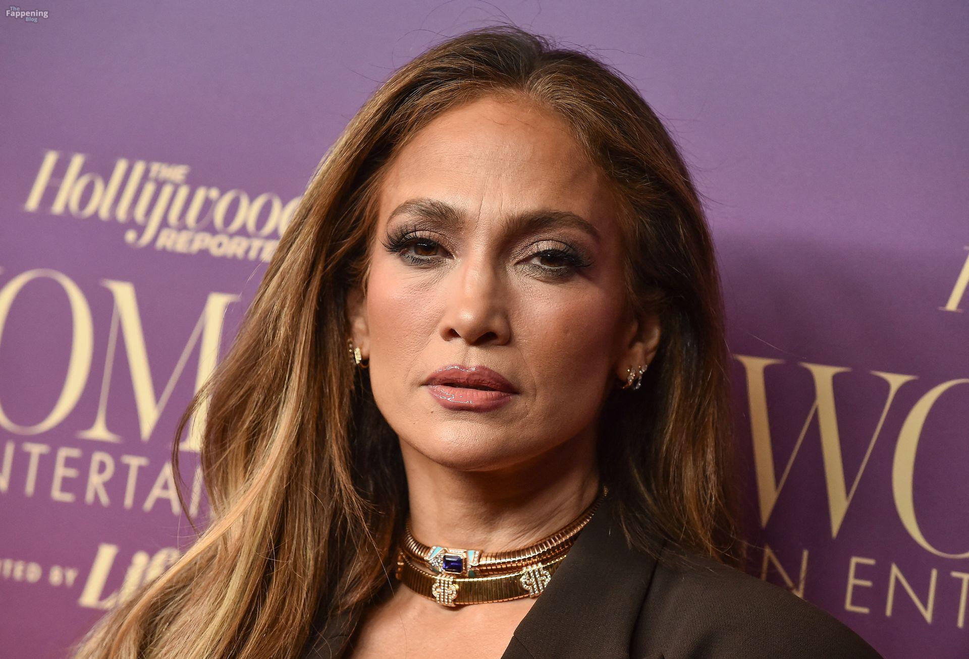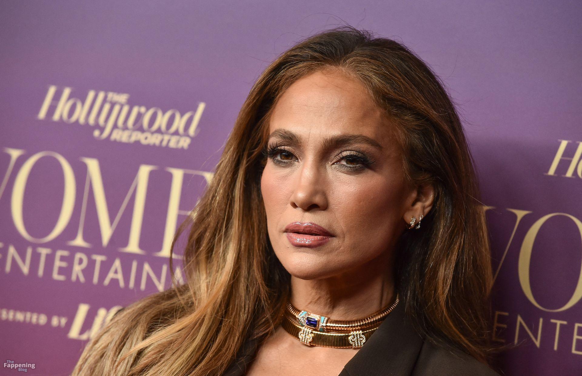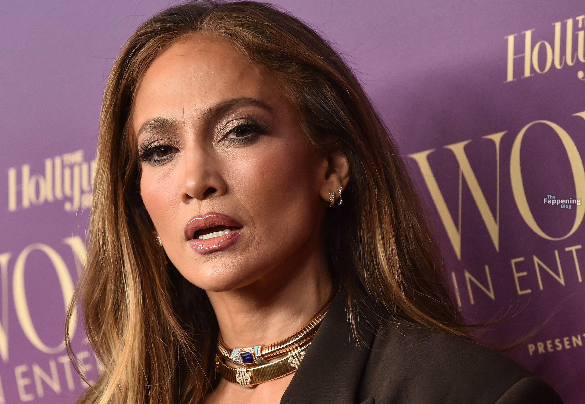 US singer-actress Jennifer Lopez was in a brown suit, flauntin’ her cleavage while attendin’ The Hollywood Reporter’s Annual Women in Entertainment Gala at the Beverly Hills Hotel in Beverly Hills, California.