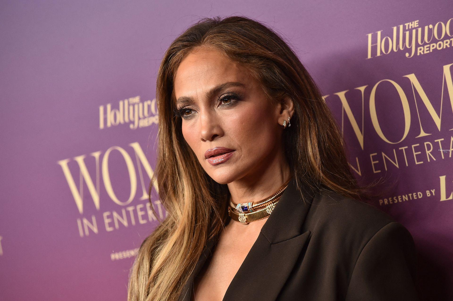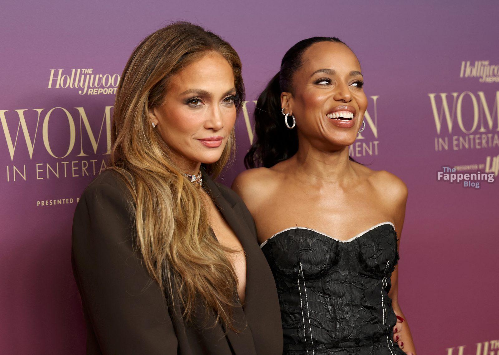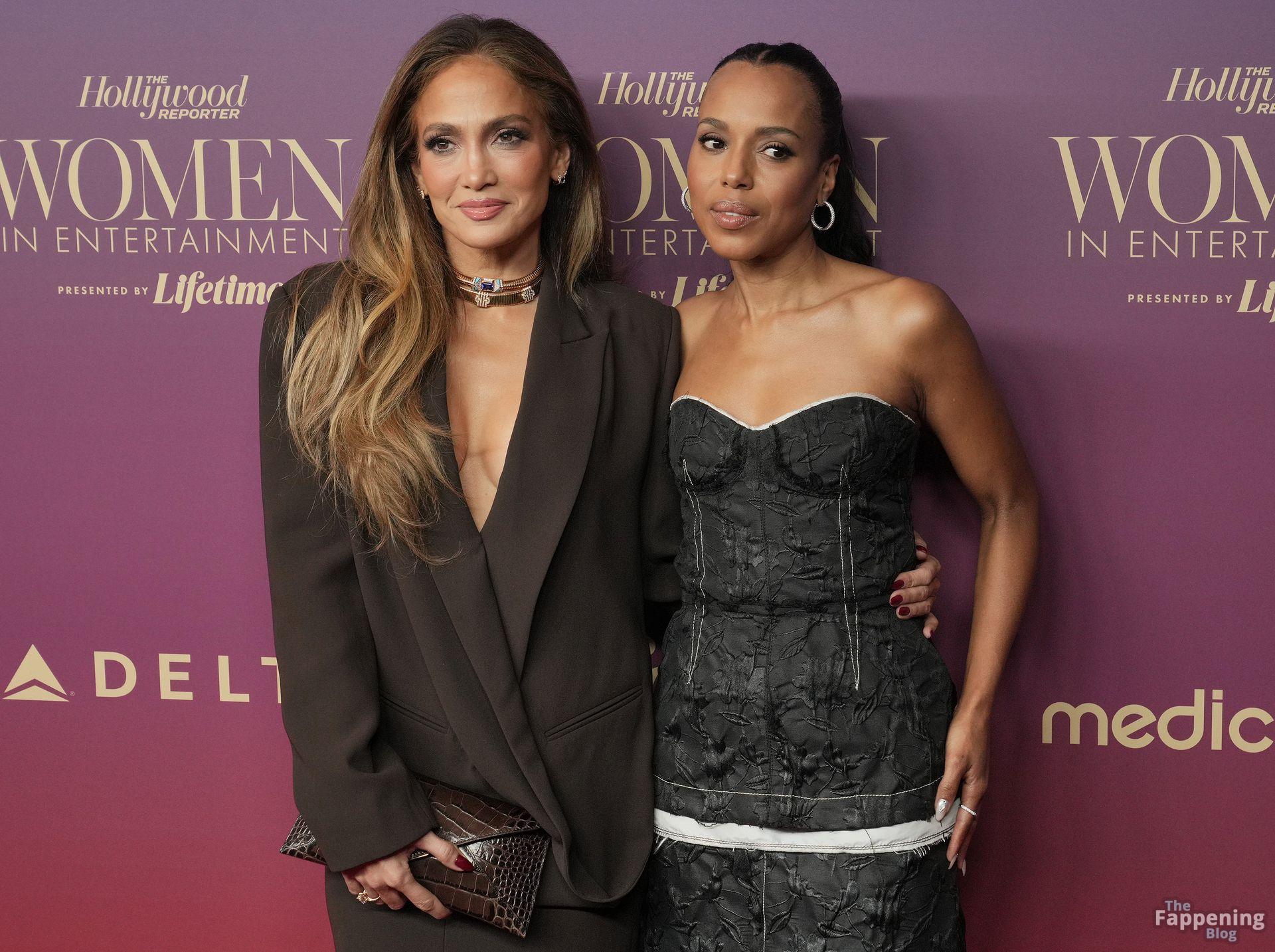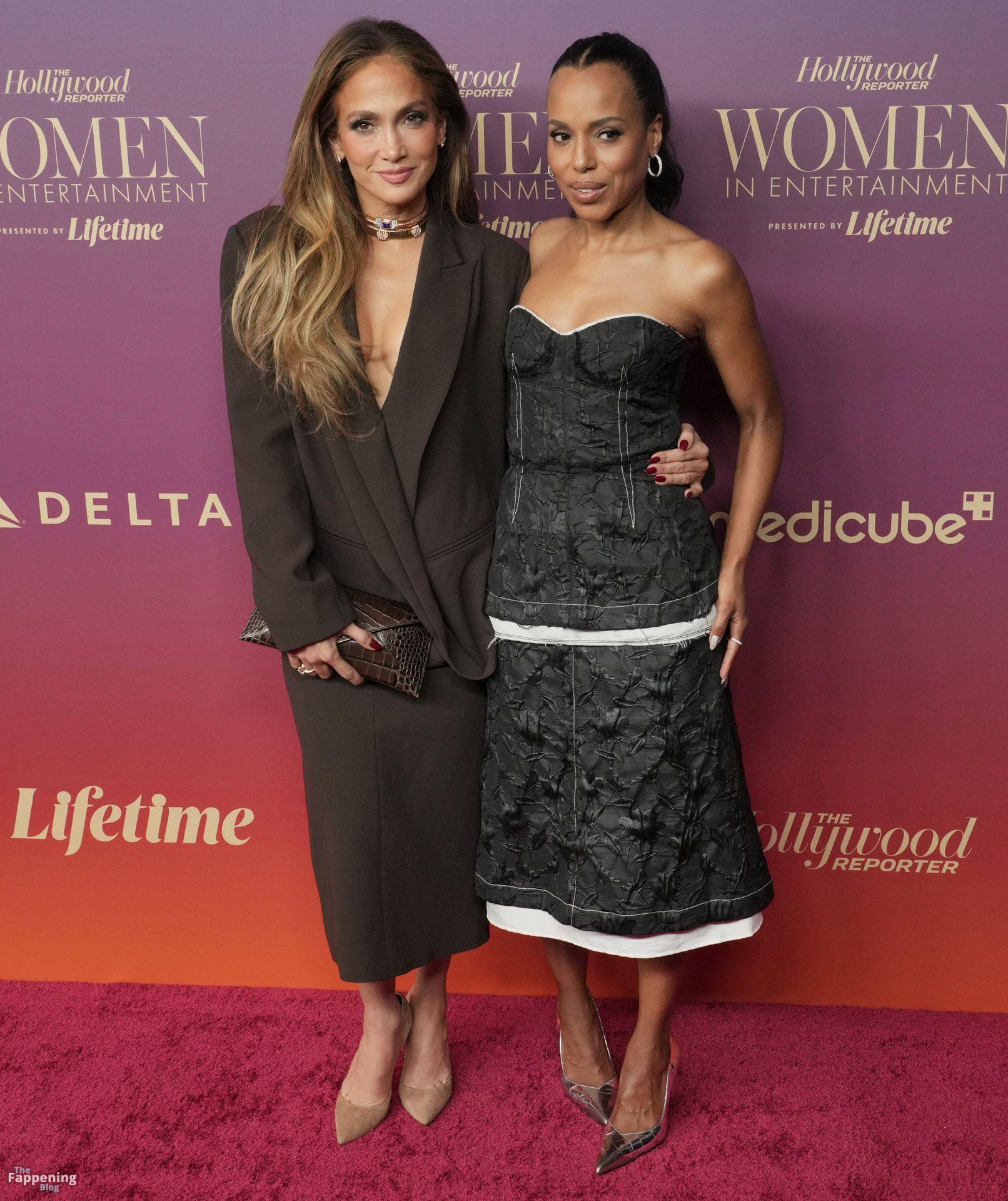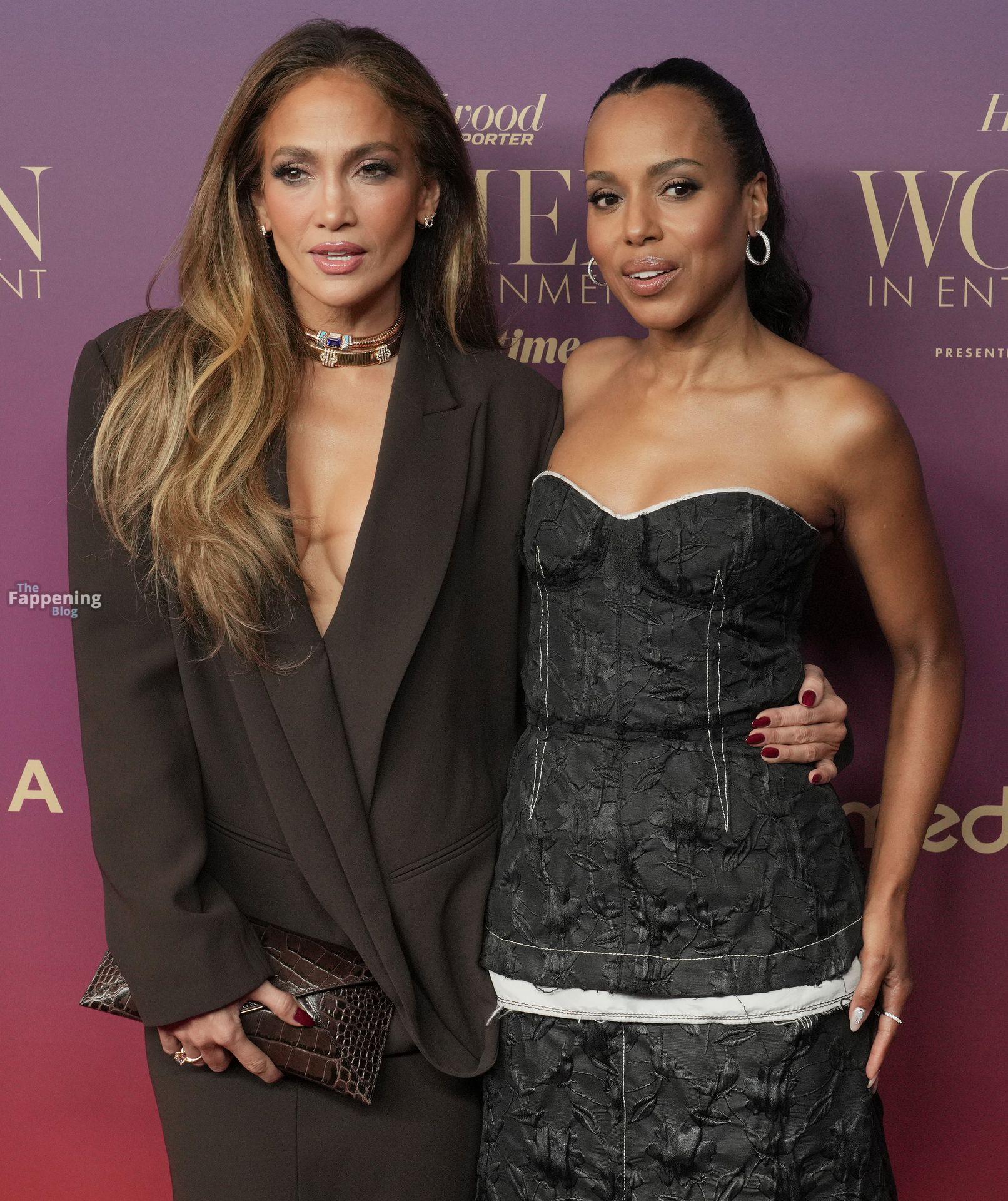US singer-actress Jennifer Lopez was in a brown suit, flauntin’ her cleavage while attendin’ The Hollywood Reporter’s Annual Women in Entertainment Gala at the Beverly Hills Hotel in Beverly Hills, California.
