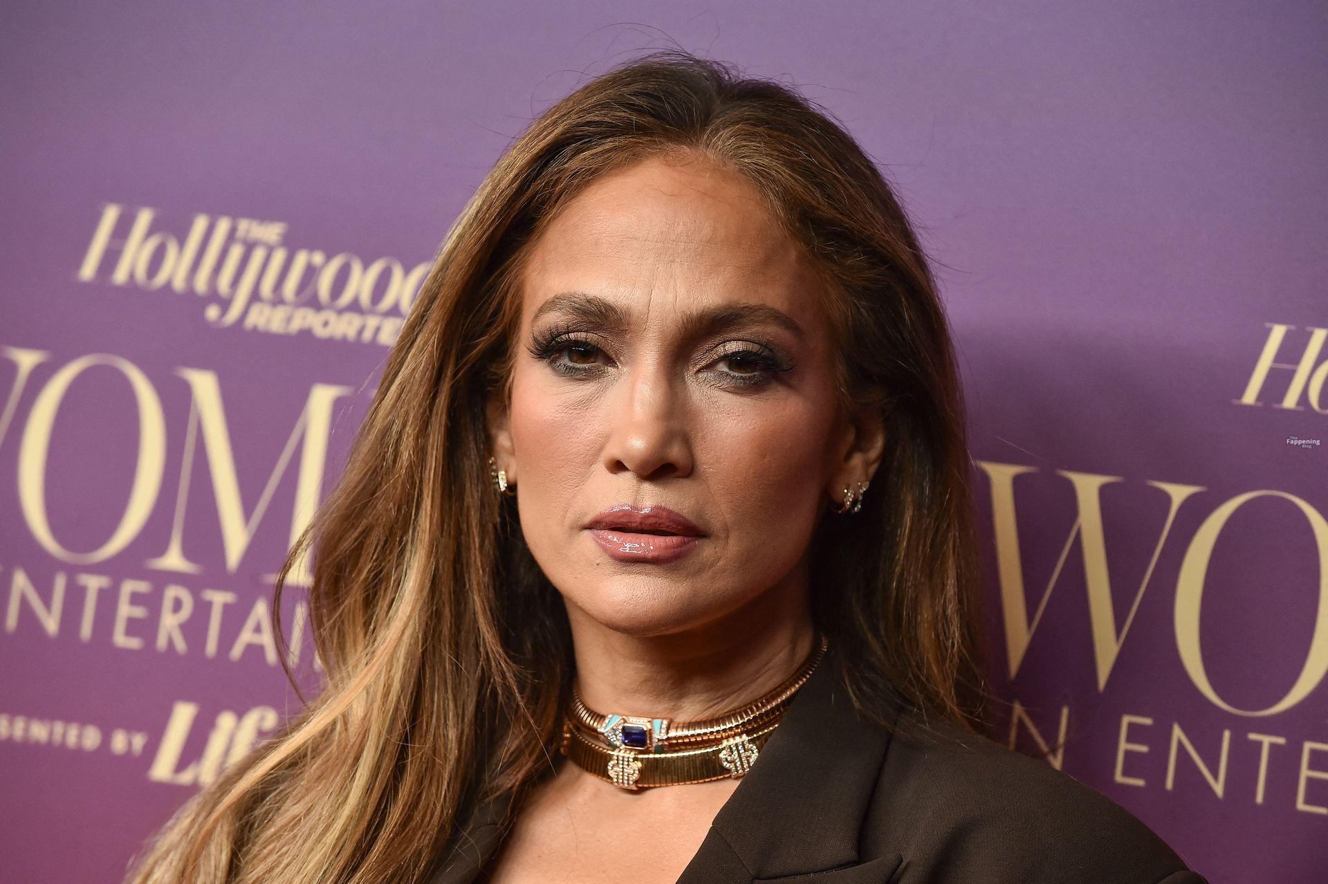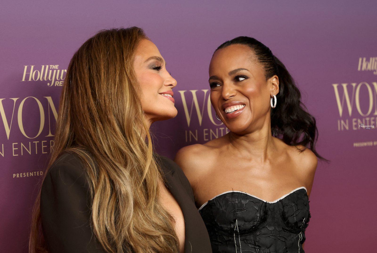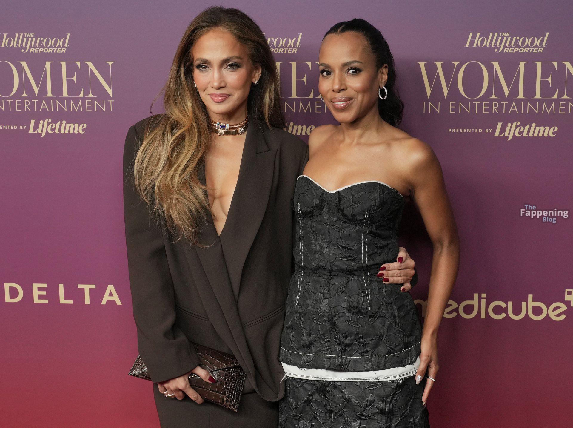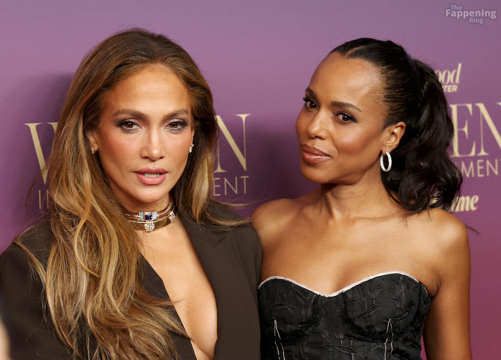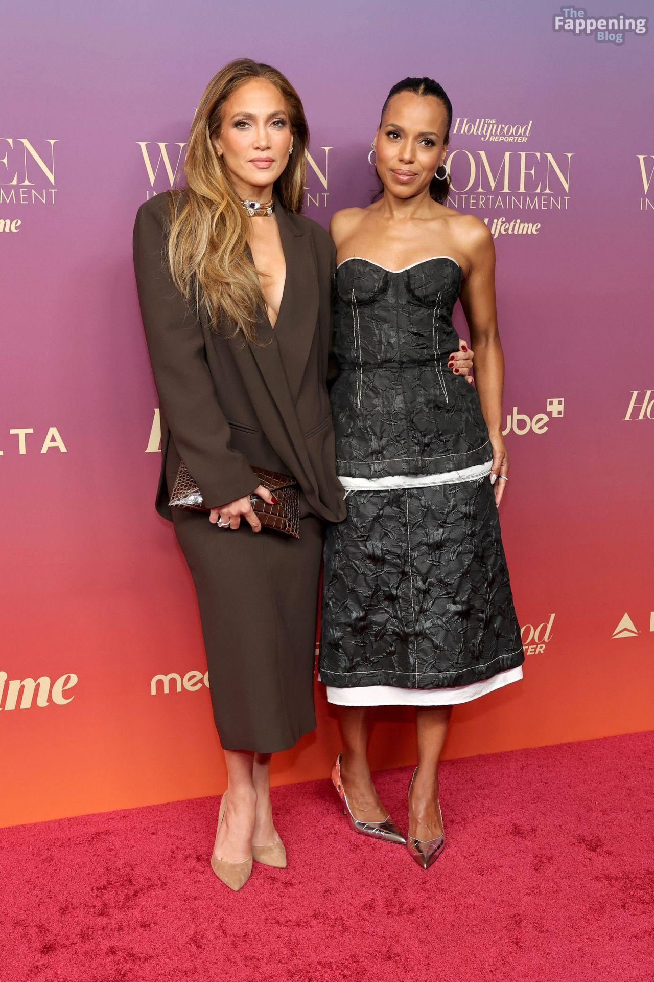 US singer-actress Jennifer Lopez was in a brown suit, flauntin’ her cleavage while attendin’ The Hollywood Reporter’s Annual Women in Entertainment Gala at the Beverly Hills Hotel in Beverly Hills, California.
