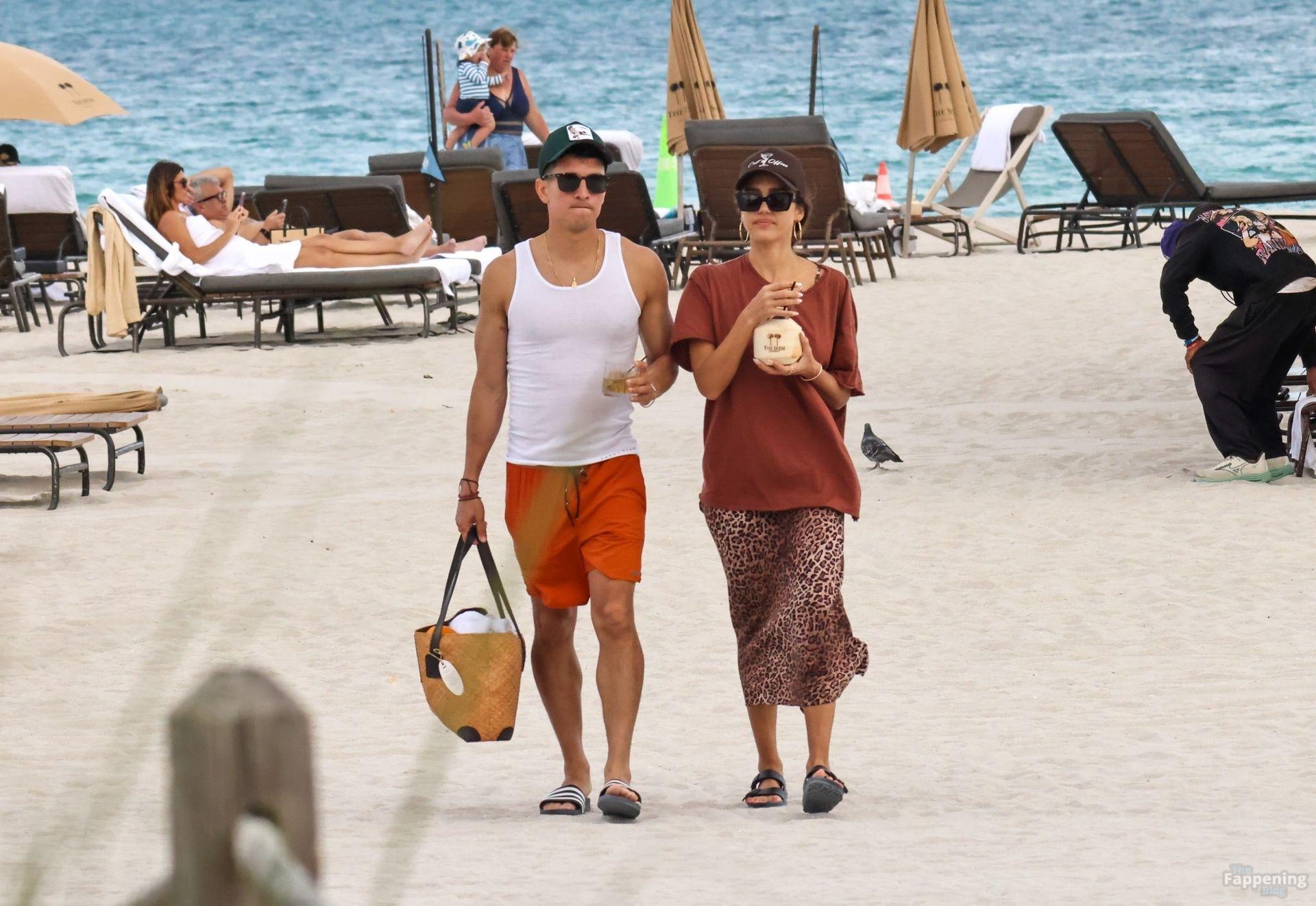 Actors Danny Ramirez and Jessica Alba were seen enjoyin’ a romantic afternoon on Miami Beach, sharin’ kisses while soakin’ up the sun. The pair appeared affectionate durin’ their post-Valentine’s Day outin’ in Florida.