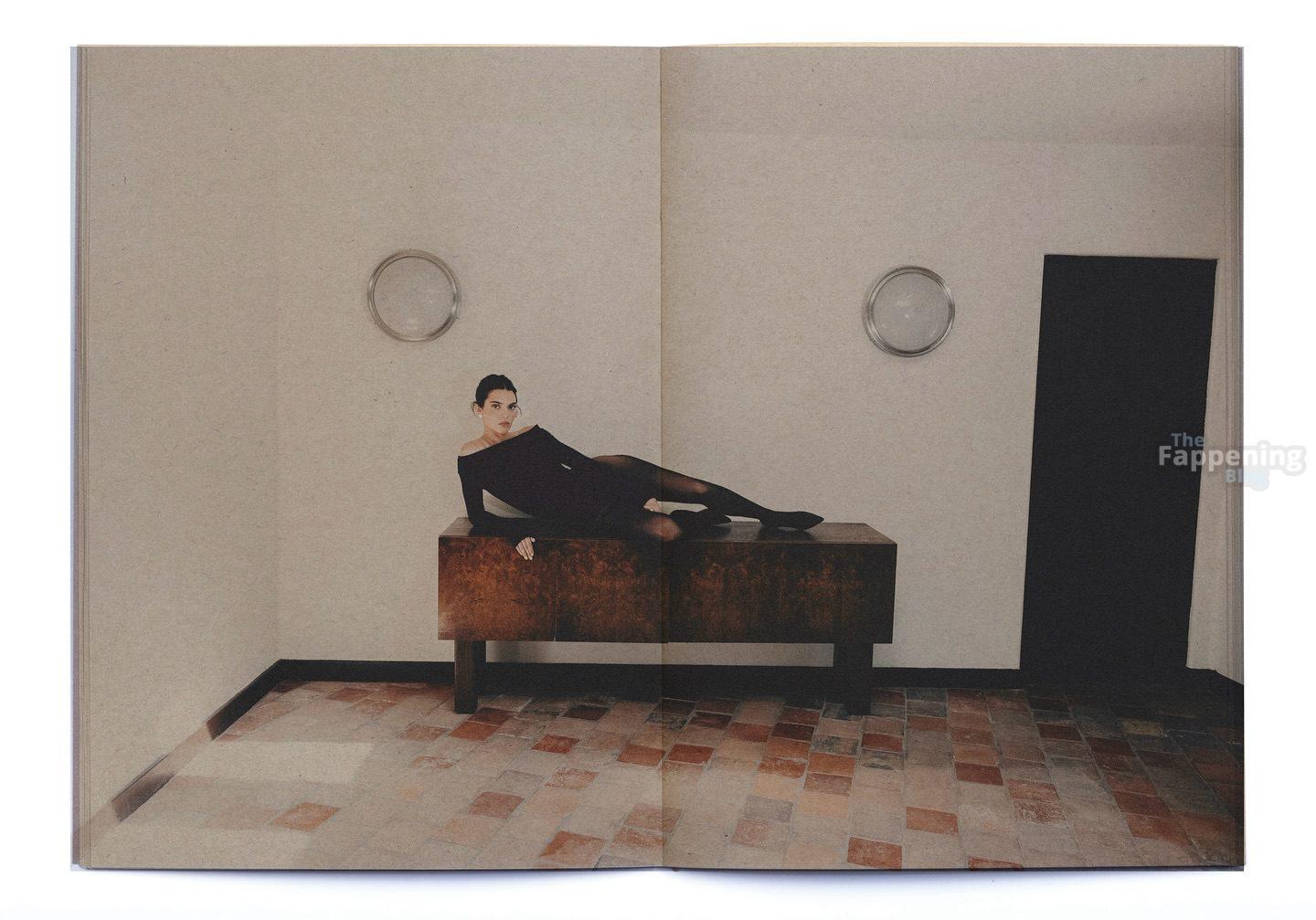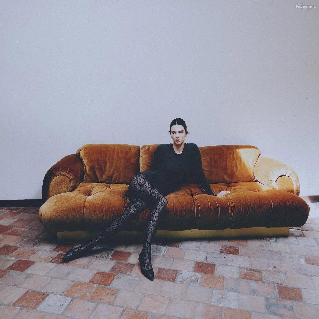 Model Kendall Jenner stripped down to lace tights and lingerie, showin’ off her legs and ass in Kat Irlin’s Calzedonia October 2025 shoot.