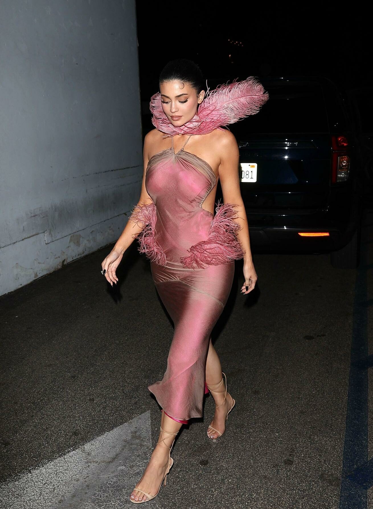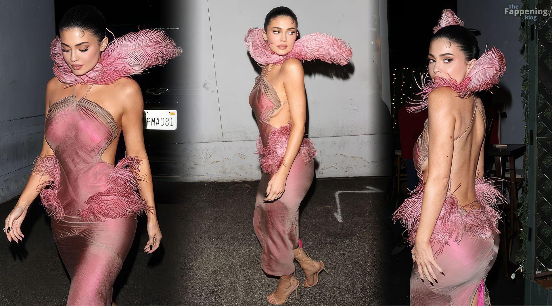 Kylie Jenner made a sexy entrance at the Kylie Cosmetics Christmas party on Tuesday night, arriving at Casa Vega Mexican restaurant in Sherman Oaks wearin’ a striking custom dress designed by Conner Ives.