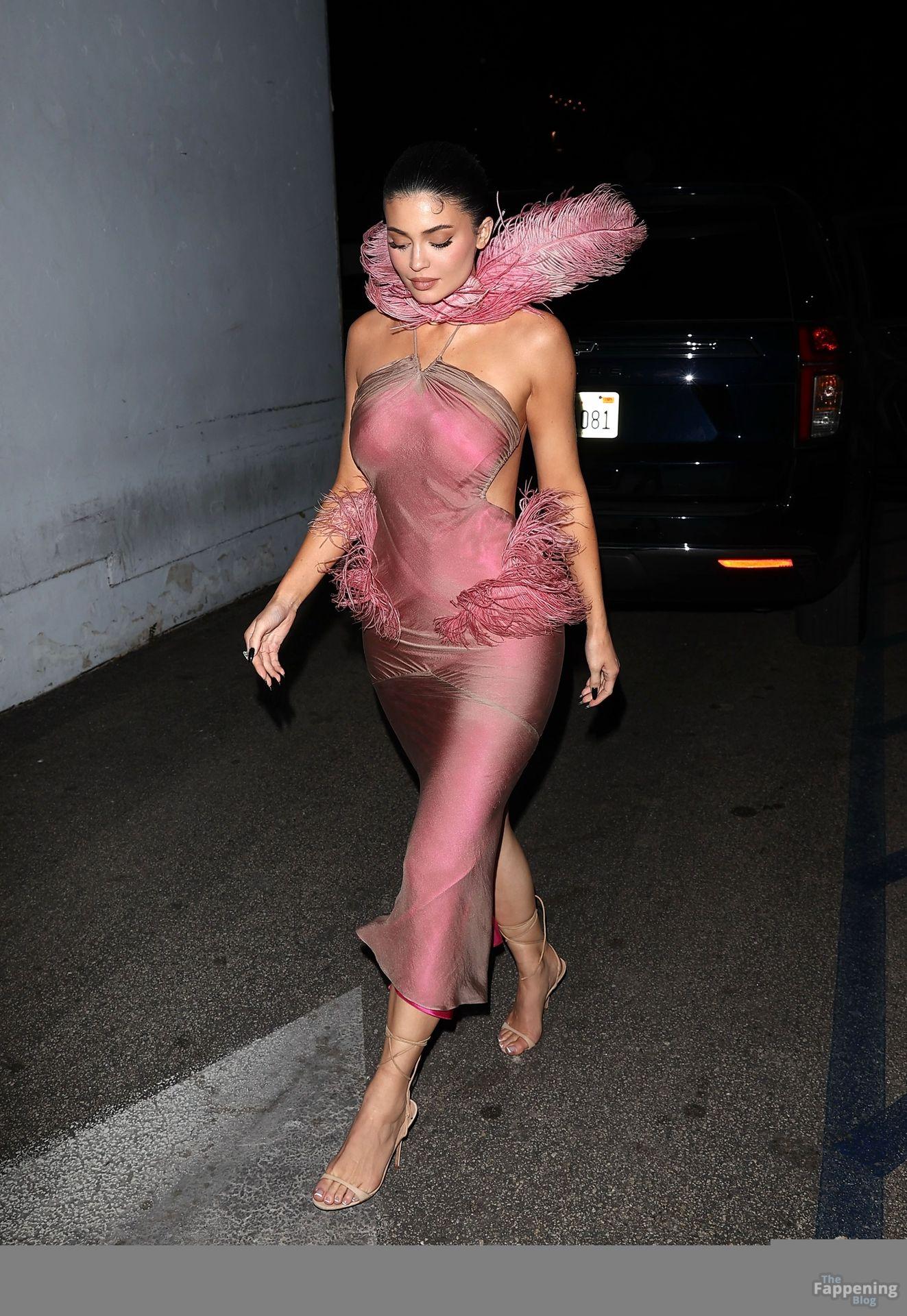 Kylie Jenner made a sexy entrance at the Kylie Cosmetics Christmas party on Tuesday night, arriving at Casa Vega Mexican restaurant in Sherman Oaks wearin’ a striking custom dress designed by Conner Ives.
