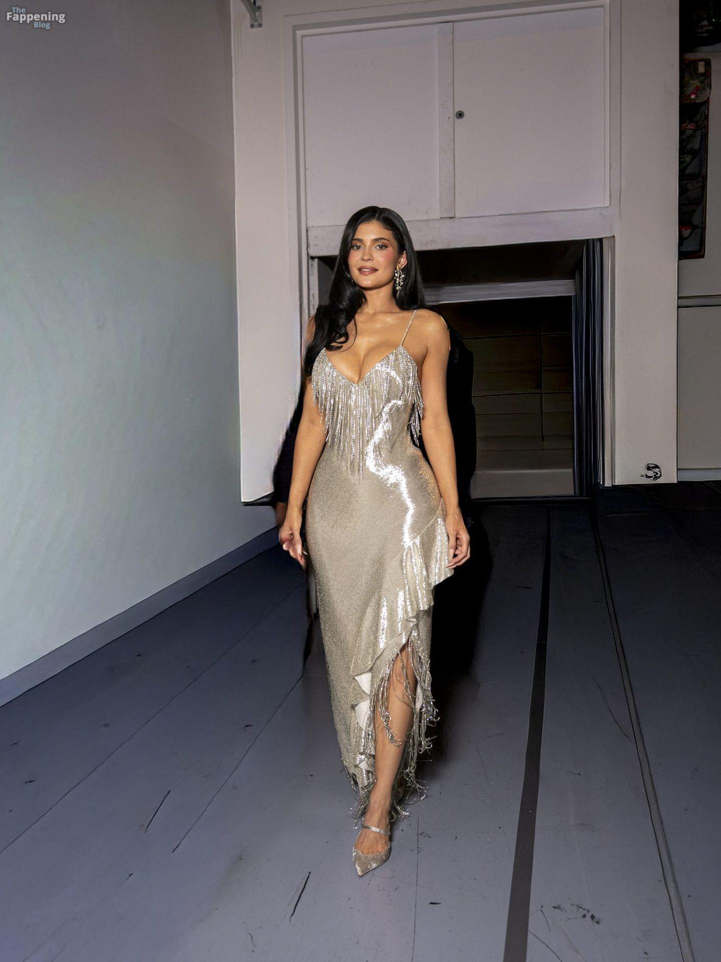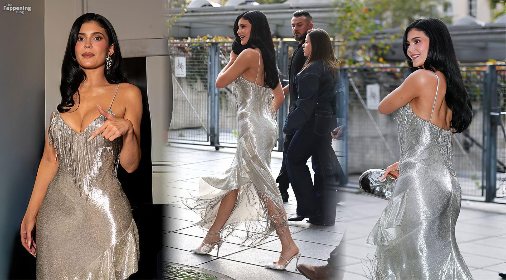 Kylie Jenner spilled out of her silver Schiaparelli dress, flashin’ cleavage and ass that had Paris Fashion Week gaspin’.