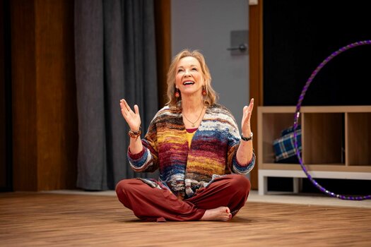 Margot Robbie is striking a full-frontal nude pose in an open sliding door, showing her breasts and pussy while wearing nothing but a pair of stockings and high heels. We then see those same stockings and shoes as she has sex with Leo on a bed, her breasts in view from above afterward as she lies on her back next to him. DiCaprio then rolls on top of Margot after a bit to start up again.