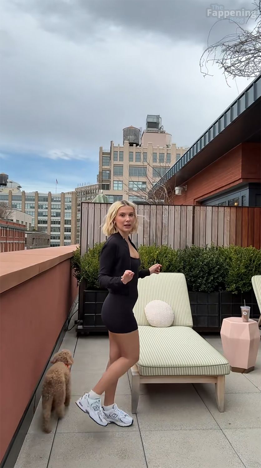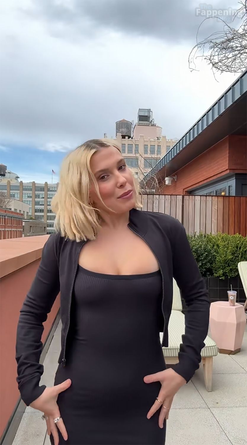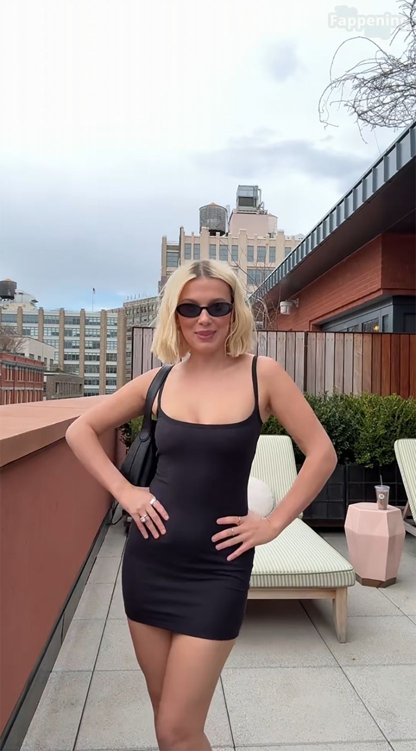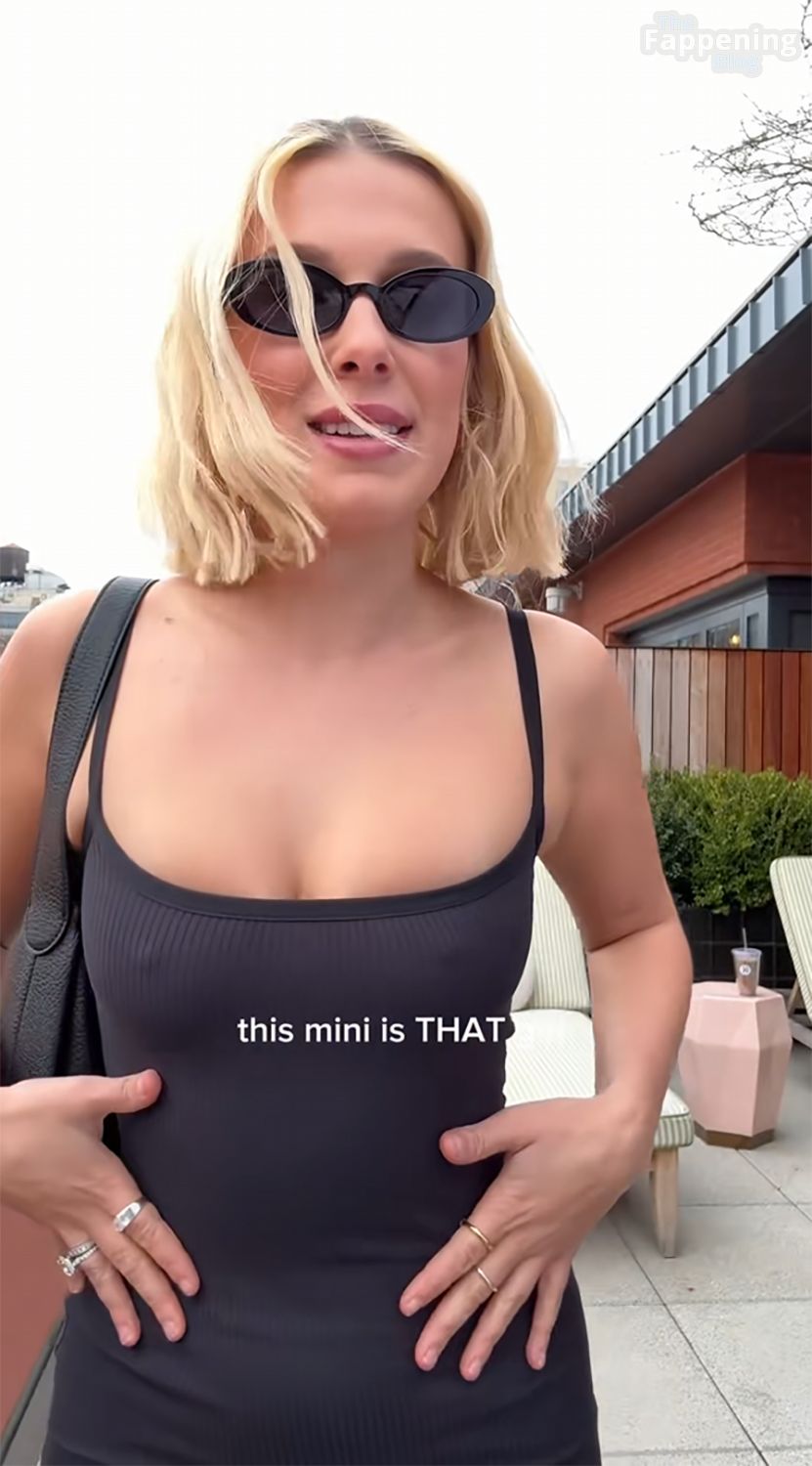 Millie Bobby Brown was out in a tight dress that let her nipples poke through for some sexy selfies and video below.