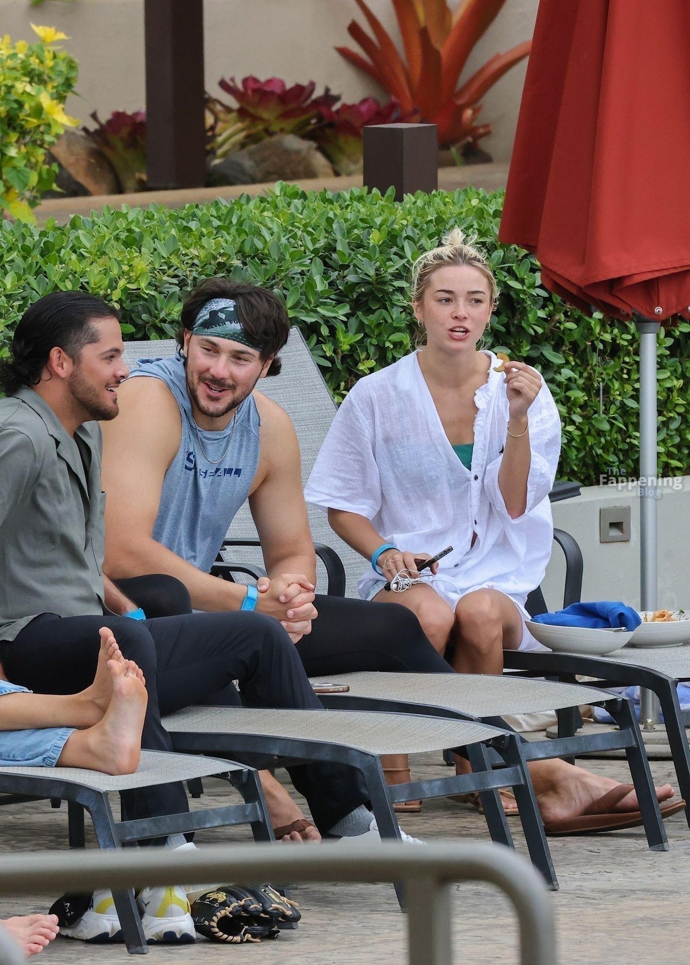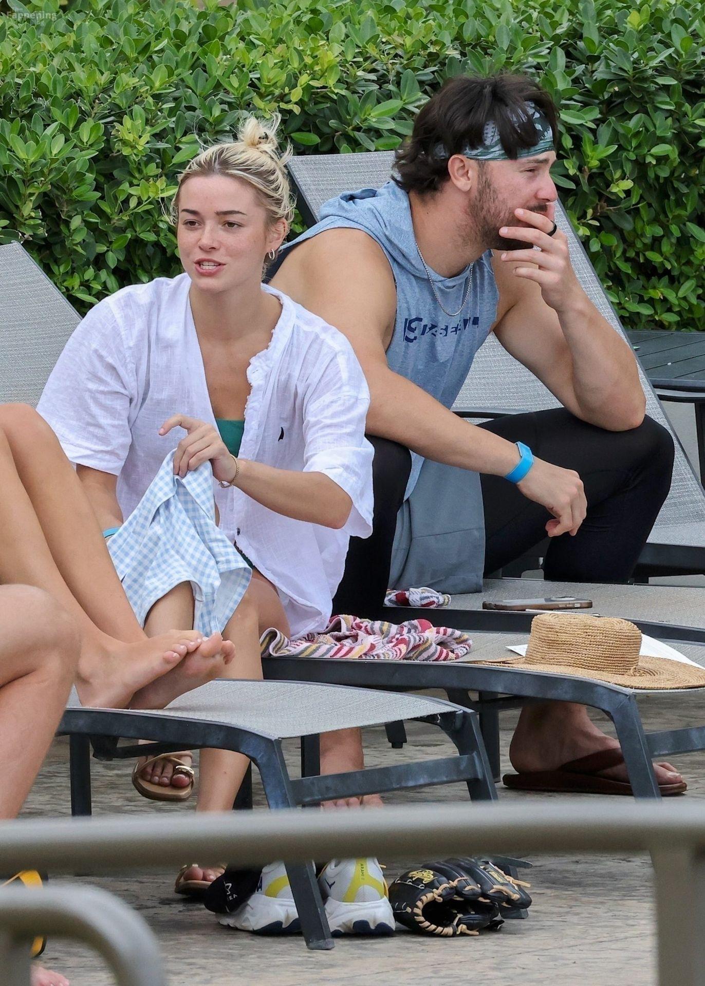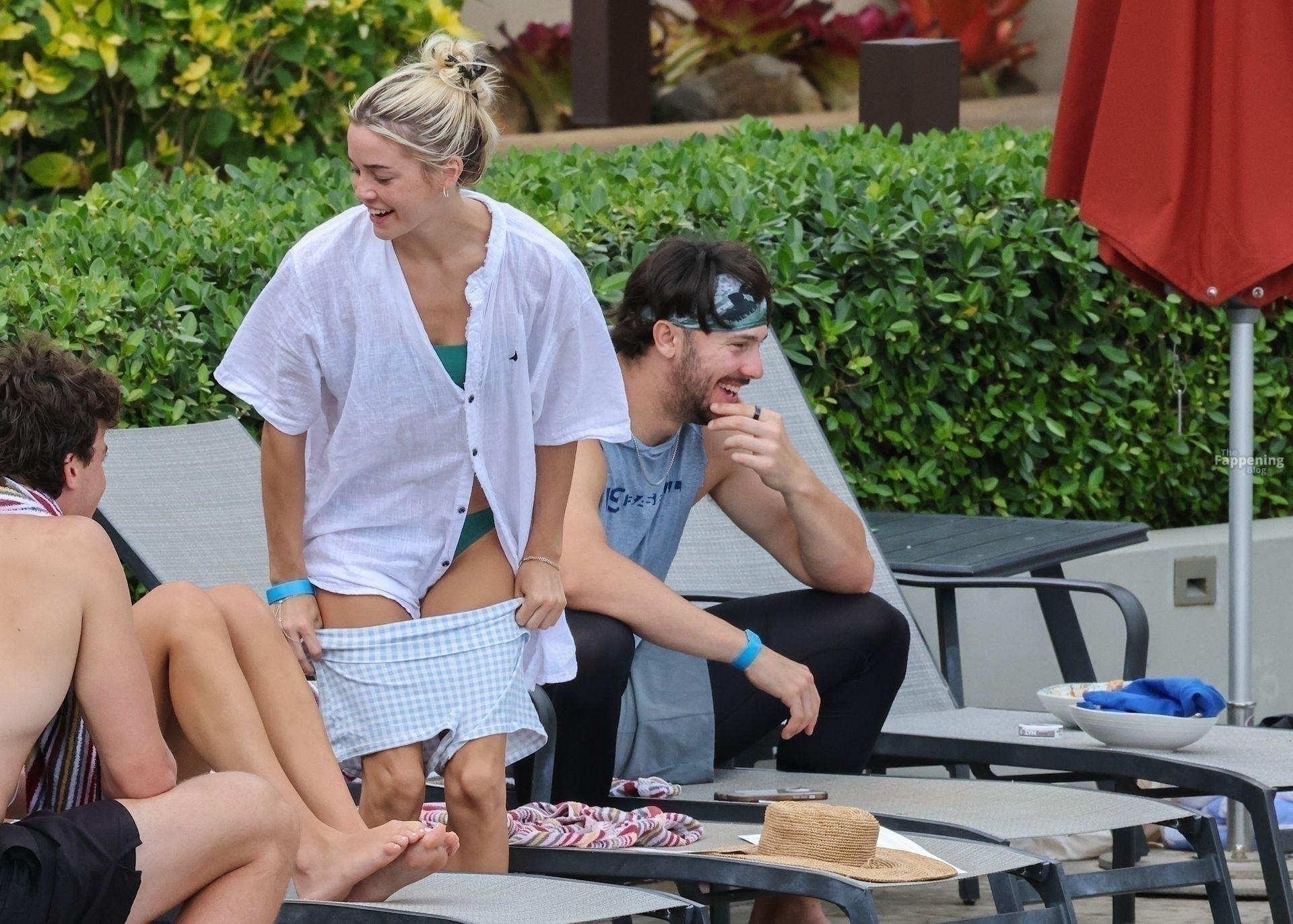 Olivia Dunne and boyfriend, MLB pitcher Paul Skenes, chill poolside in Kauai with friends like Pirates pitcher Jared Jones. The 23-year-old ex-LSU gymnast rocks a green bikini and straw hat while Paul keeps it casual in a sleeveless tee.
