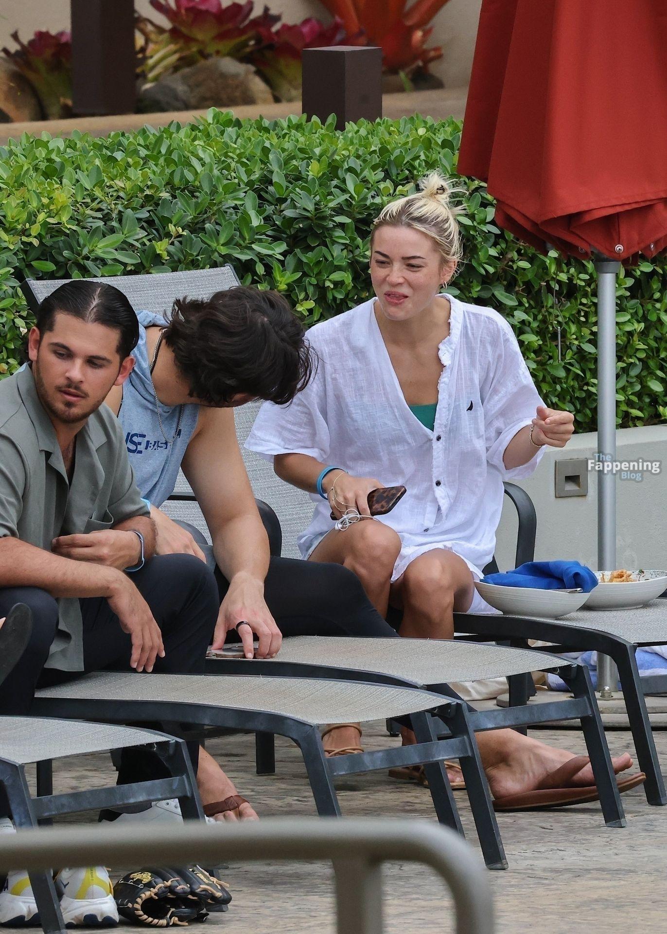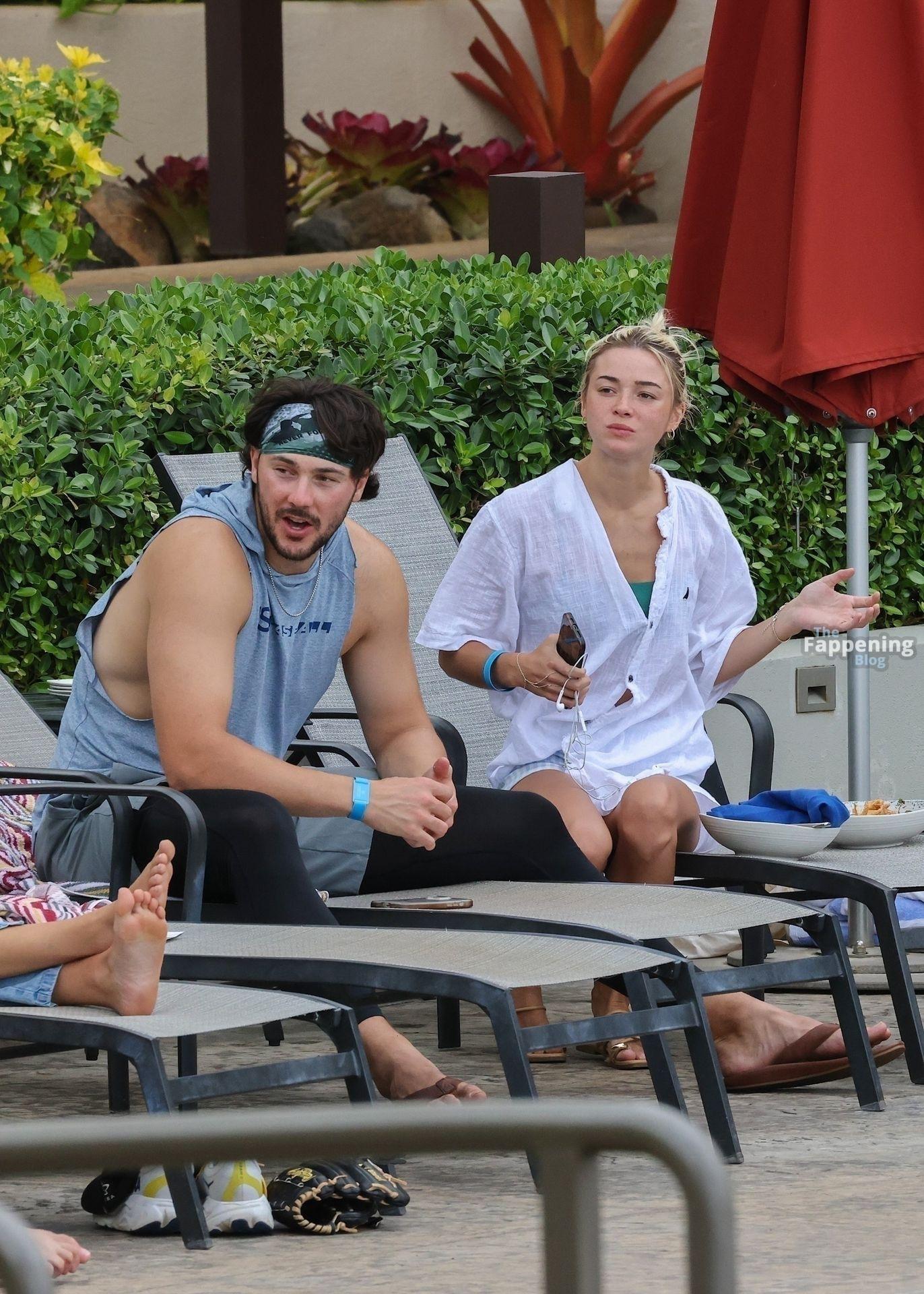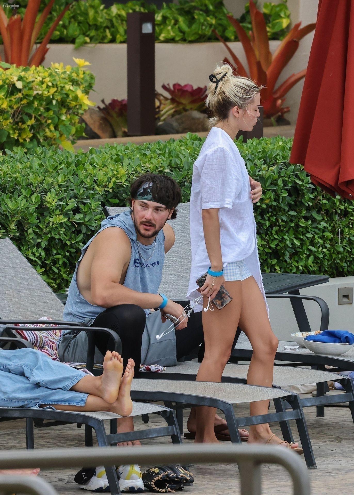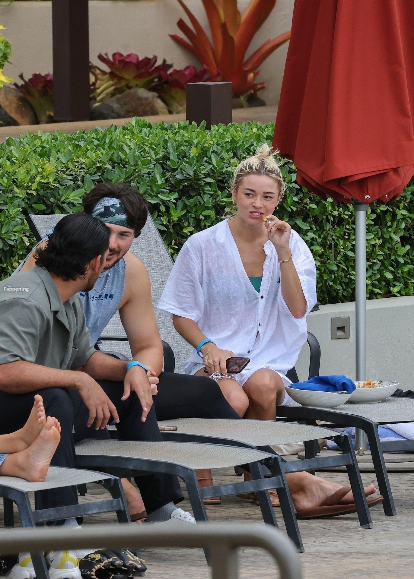 Olivia Dunne and boyfriend, MLB pitcher Paul Skenes, chill poolside in Kauai with friends like Pirates pitcher Jared Jones. The 23-year-old ex-LSU gymnast rocks a green bikini and straw hat while Paul keeps it casual in a sleeveless tee.