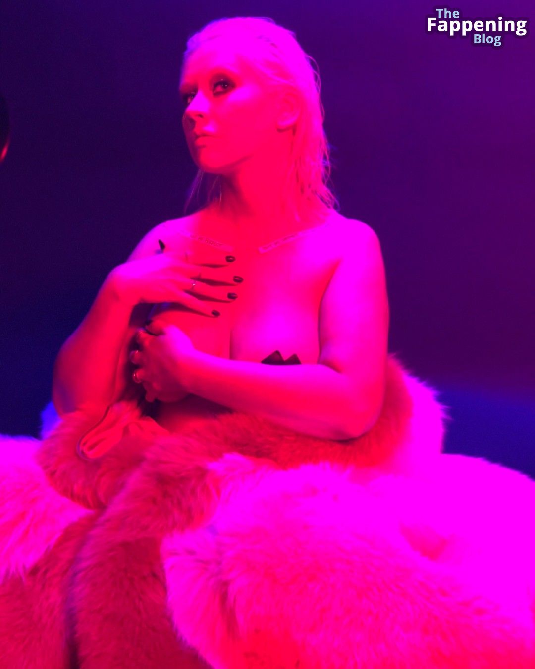 Super popular singer Christina Aguilera showed her tits with stickers on her nipples.
